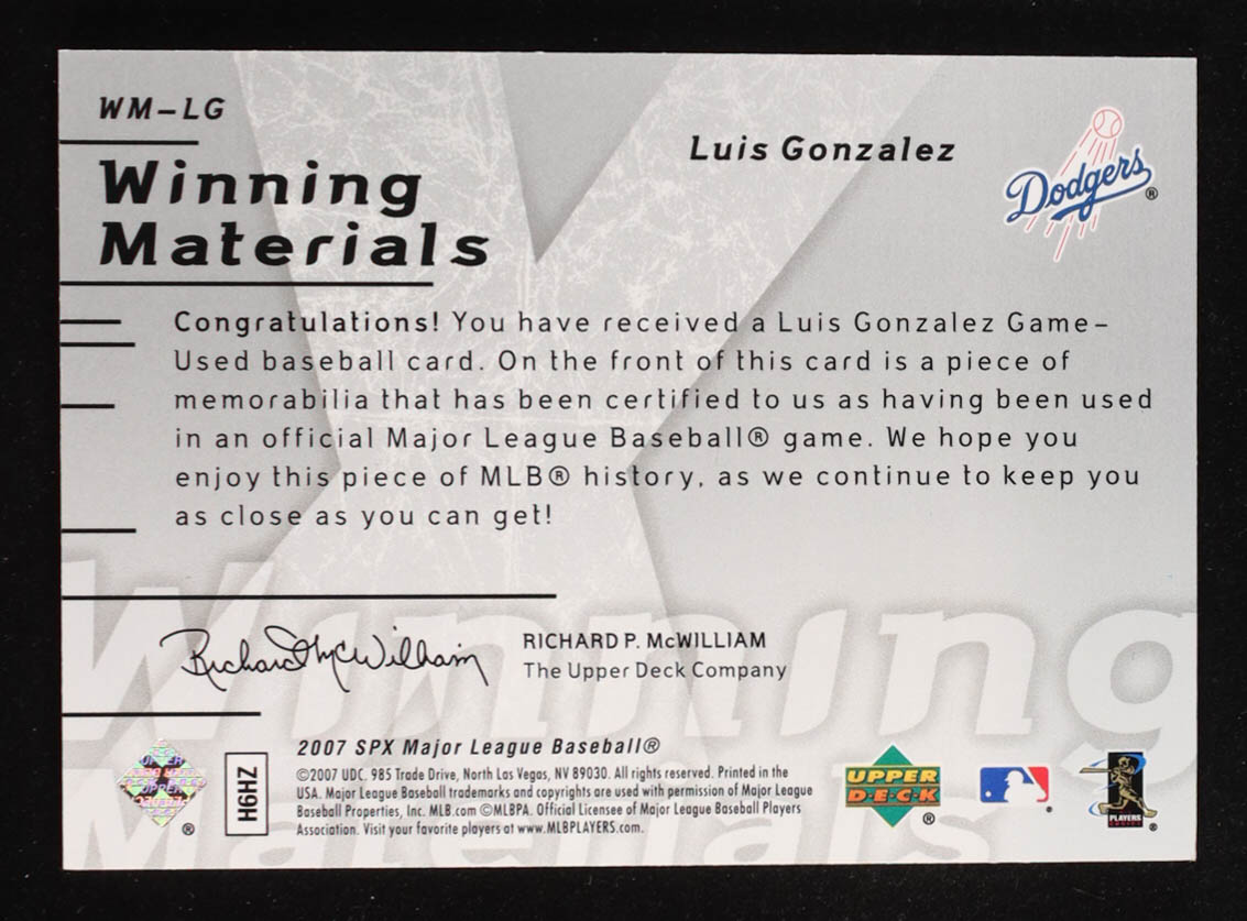 Luis Gonzalez 2007 SPx Winning Materials Patches Silver #LG #51 /99