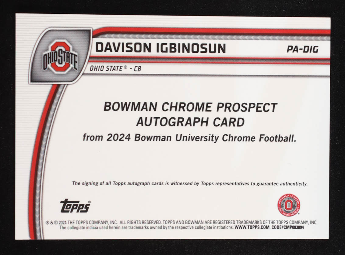 Davison Igbinosun 2024 Bowman Chrome University Prospect Autographs Green Refractors #PADIG #41/99 RC
