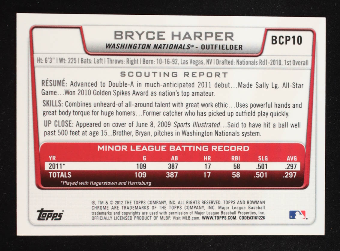 Bryce Harper 2012 Bowman Chrome Prospects #BCP10 RC