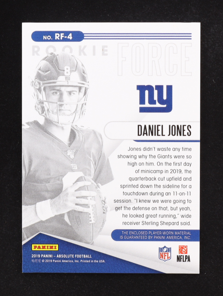 Daniel Jones 2019 Panini Absolute Rookie Force Jerseys Player Worn Patch #RF4 RC