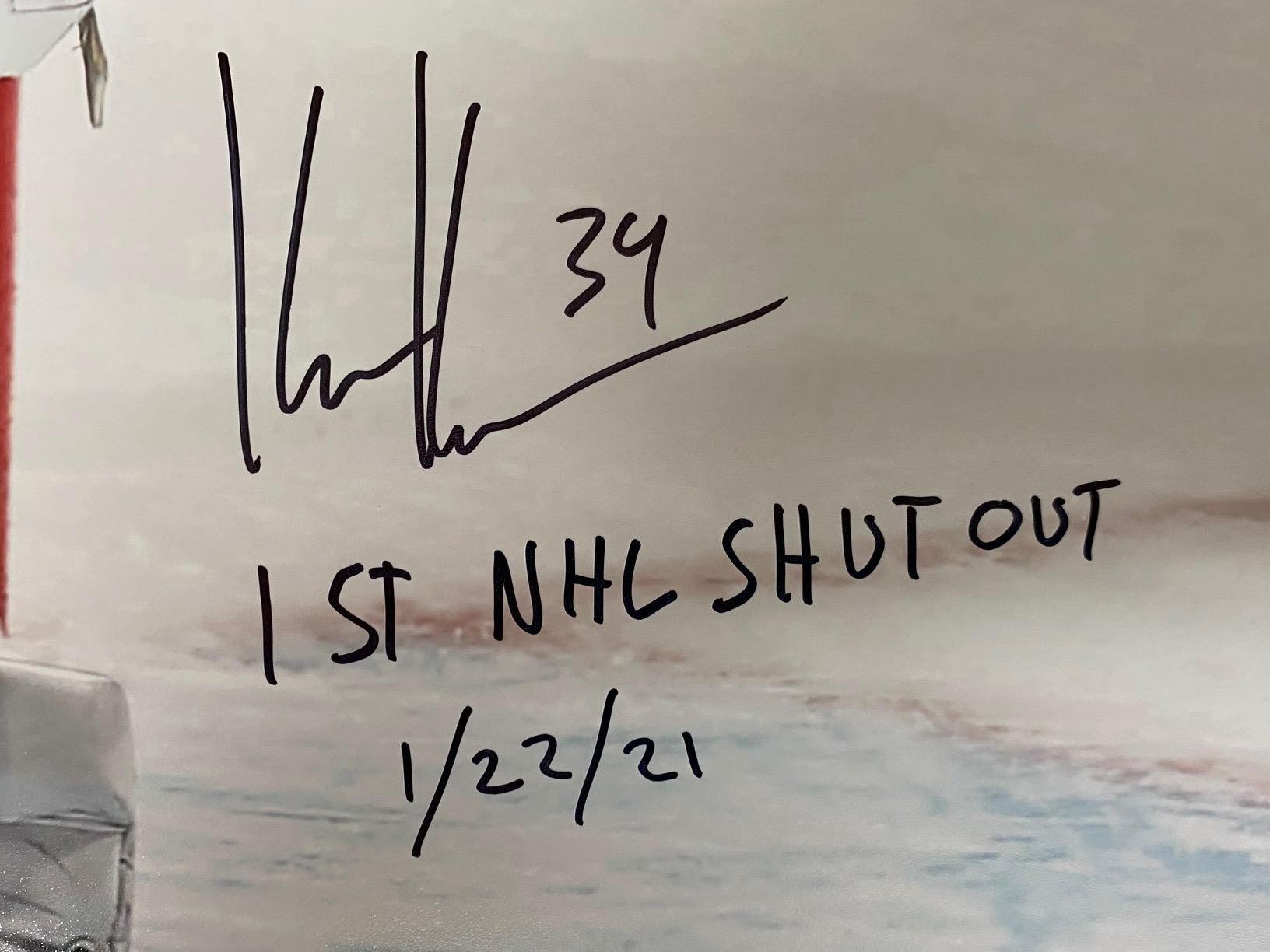 Kaapo Kahkonen Signed LE Wild 16x20 Photo Inscribed "1st NHL Shut Out 1/22/21" (Fanatics)