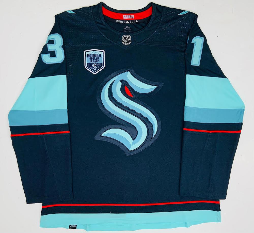 Adidas style jersey. Everything sewn on, size 54. Hand-signed by Philipp Grubauer (Seattle Kraken).