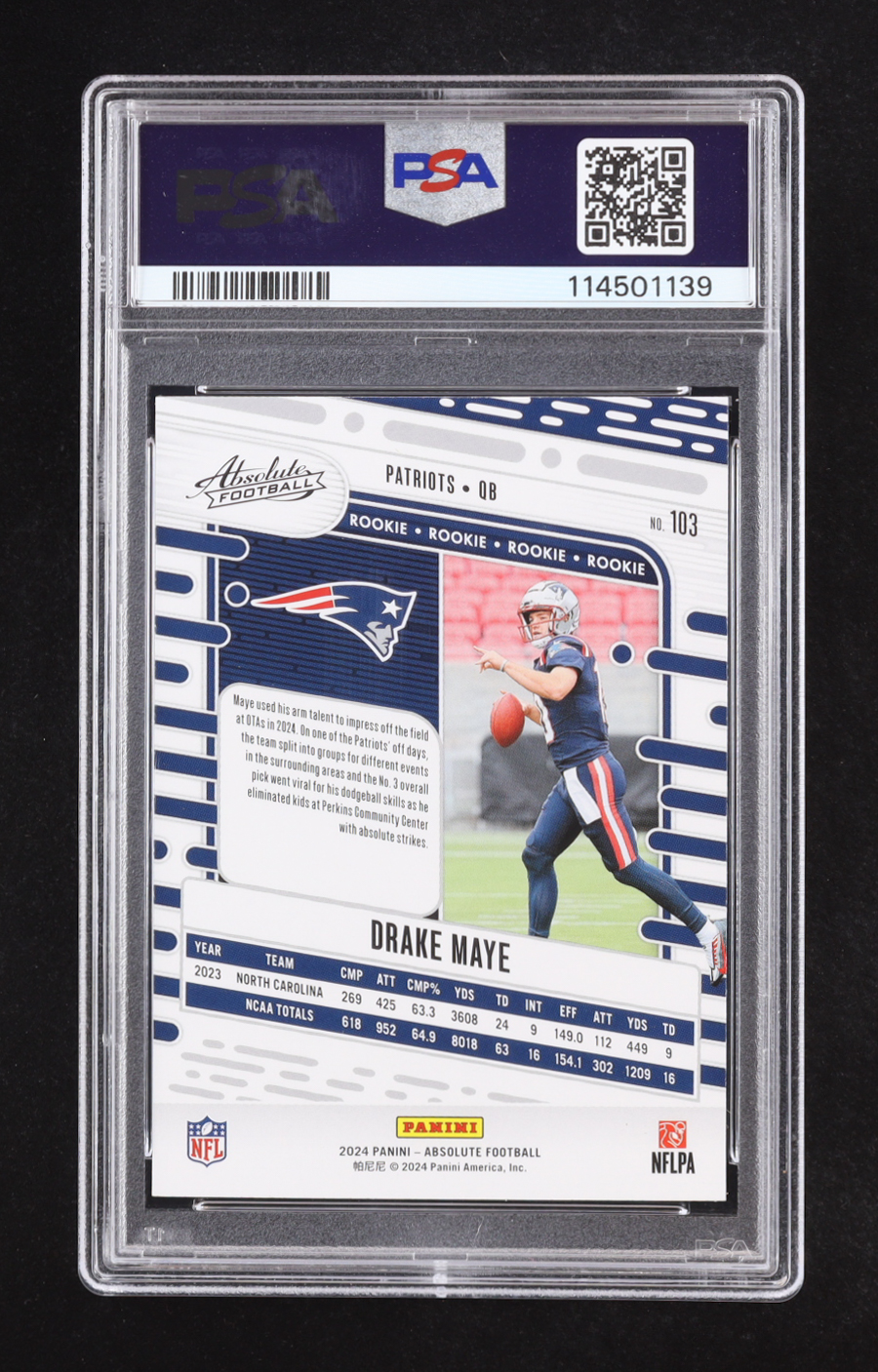 Drake Maye 2024 Absolute Blue #103 RC (PSA 10)