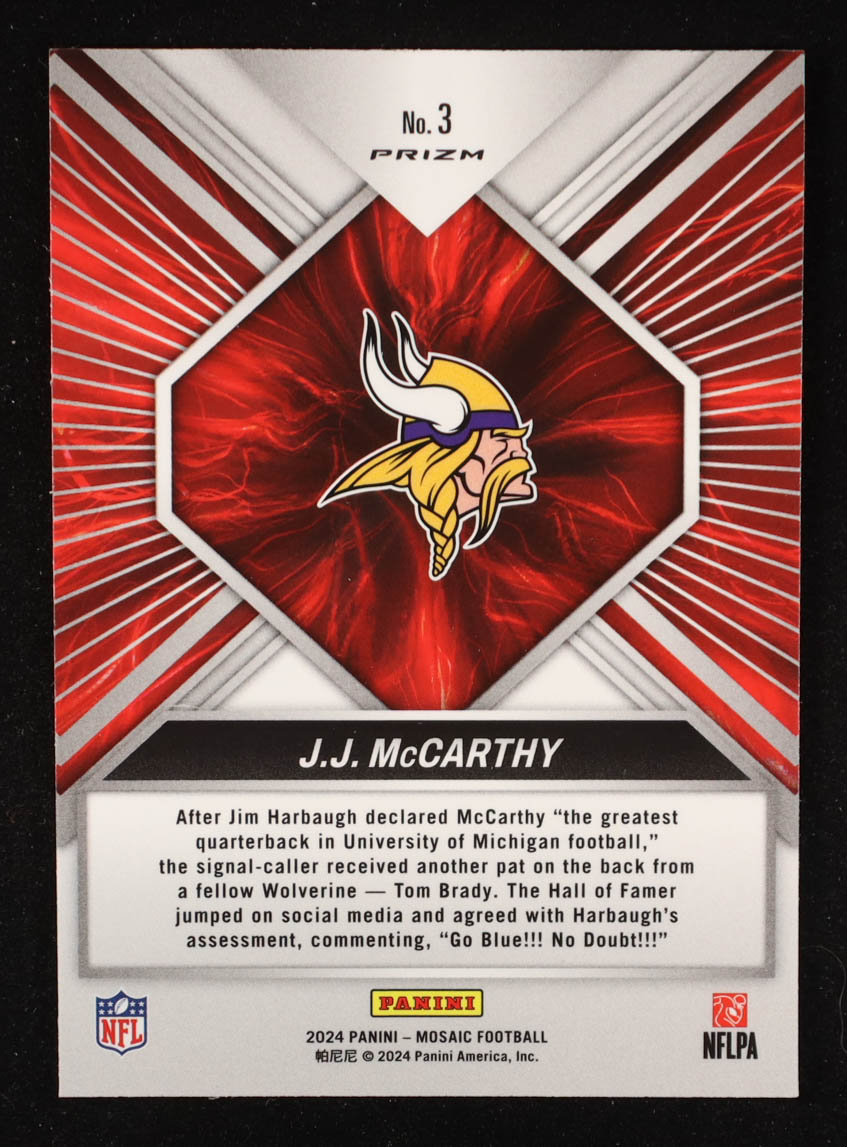 JJ McCarthy 2024 Panini Mosaic Overdrive Silver #3 RC
