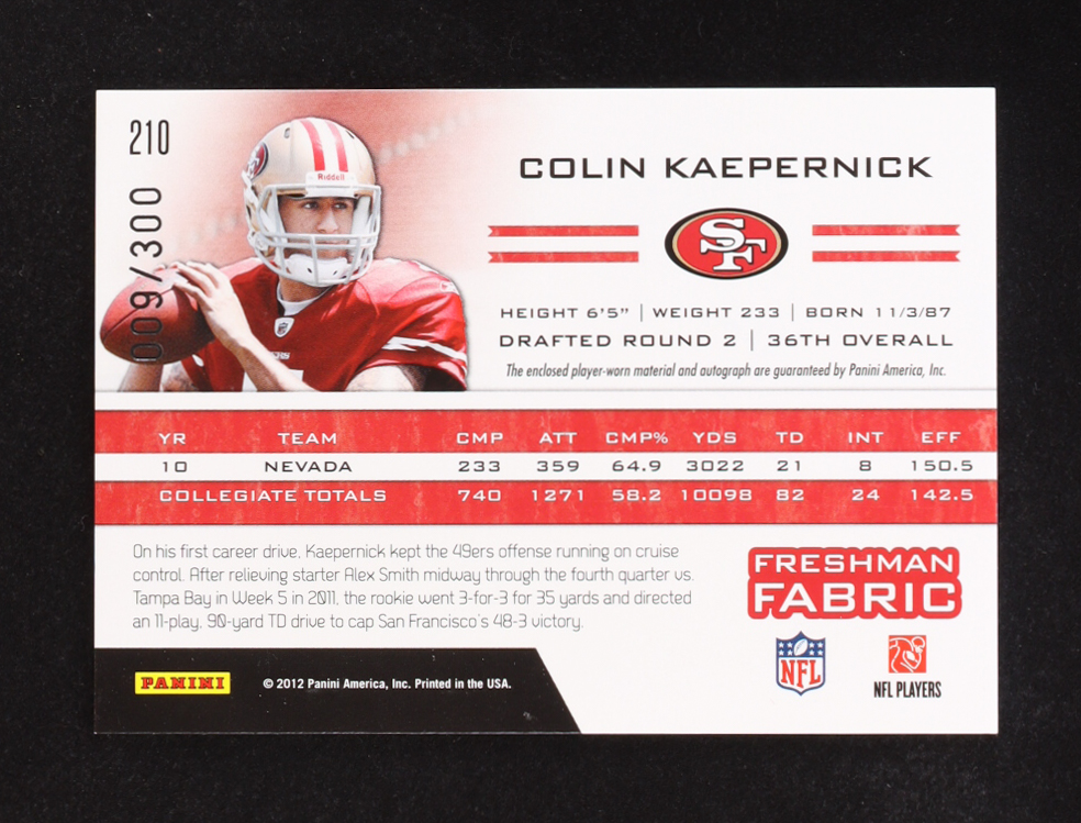 Colin Kaepernick 2011 Panini Freshman Fabric Autographs RC #003/300