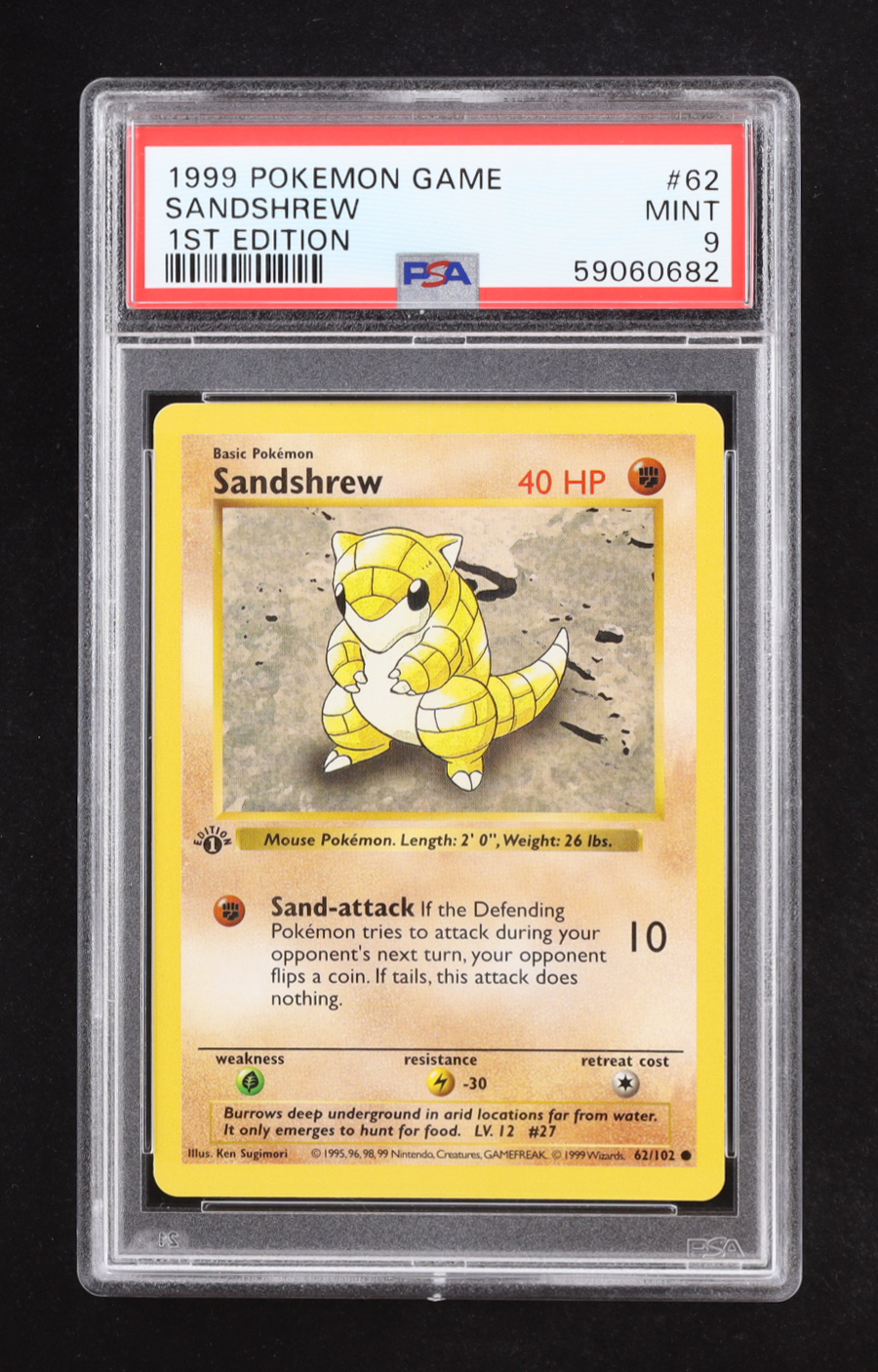 Sandshrew 1999 Pokemon Base 1st Edition C #62 (PSA 9)