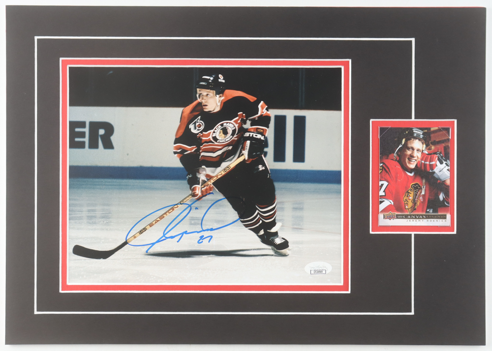 Jeremy Roenick Signed Blackhawks 12x17 Custom Matted Photo Display with 2020-21 Upper Deck SP Signature Edition Legends - UD Canvas Legends #C-15 Trading Card (JSA)