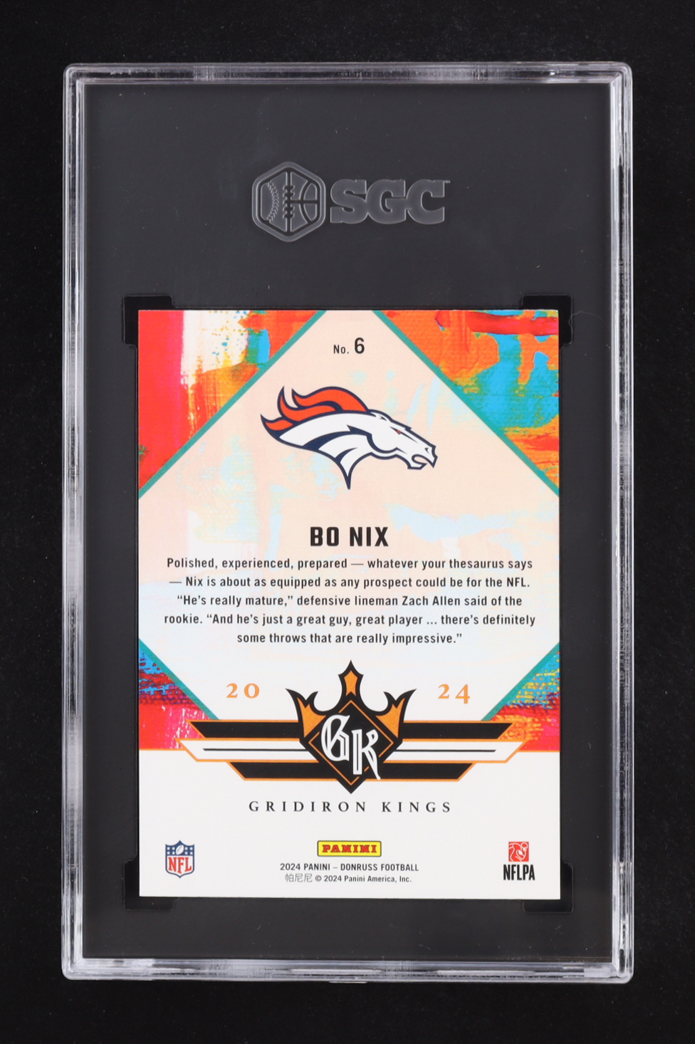 Bo Nix 2024 Donruss Rookie Gridiron Kings #6 RC (SGC 10)
