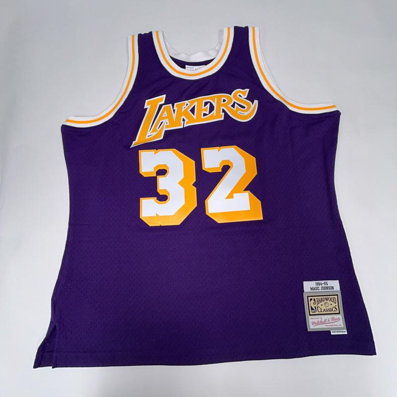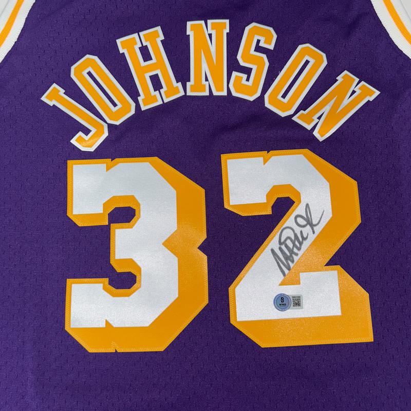 Mitchell & Ness jersey with everything sewn on, size XL. Hand-signed by Magic Johnson (Los Angeles Lakers, HOF).