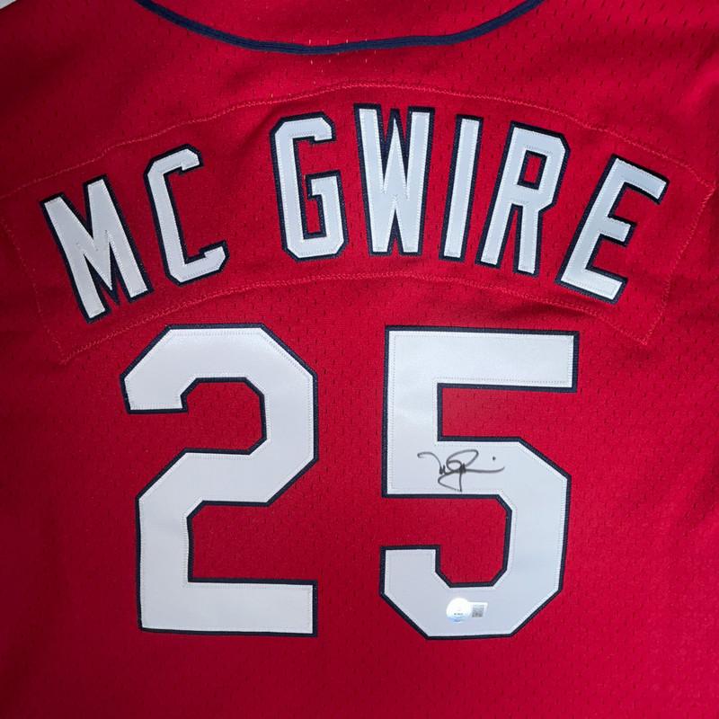 Mitchell & Ness jersey with everything sewn on, size XL. Hand-signed by Mark Mcgwire (St. Louis Cardinals).