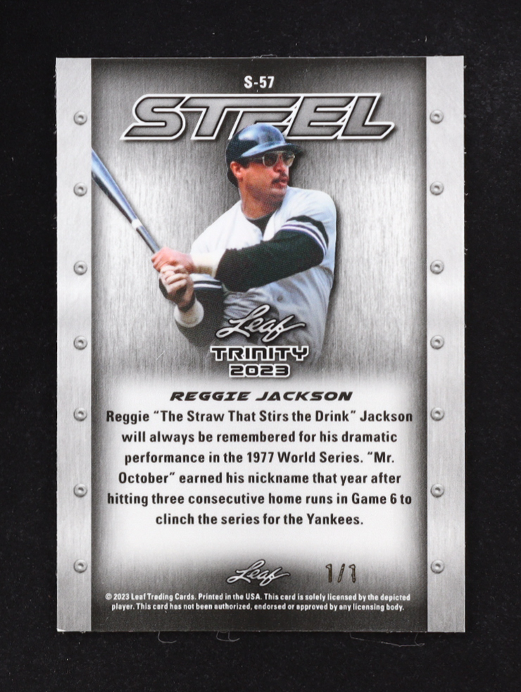 Reggie Jackson 2023 Leaf Trinity Mega Box Steel Carbon Shimmer Gold #S57 #1/1