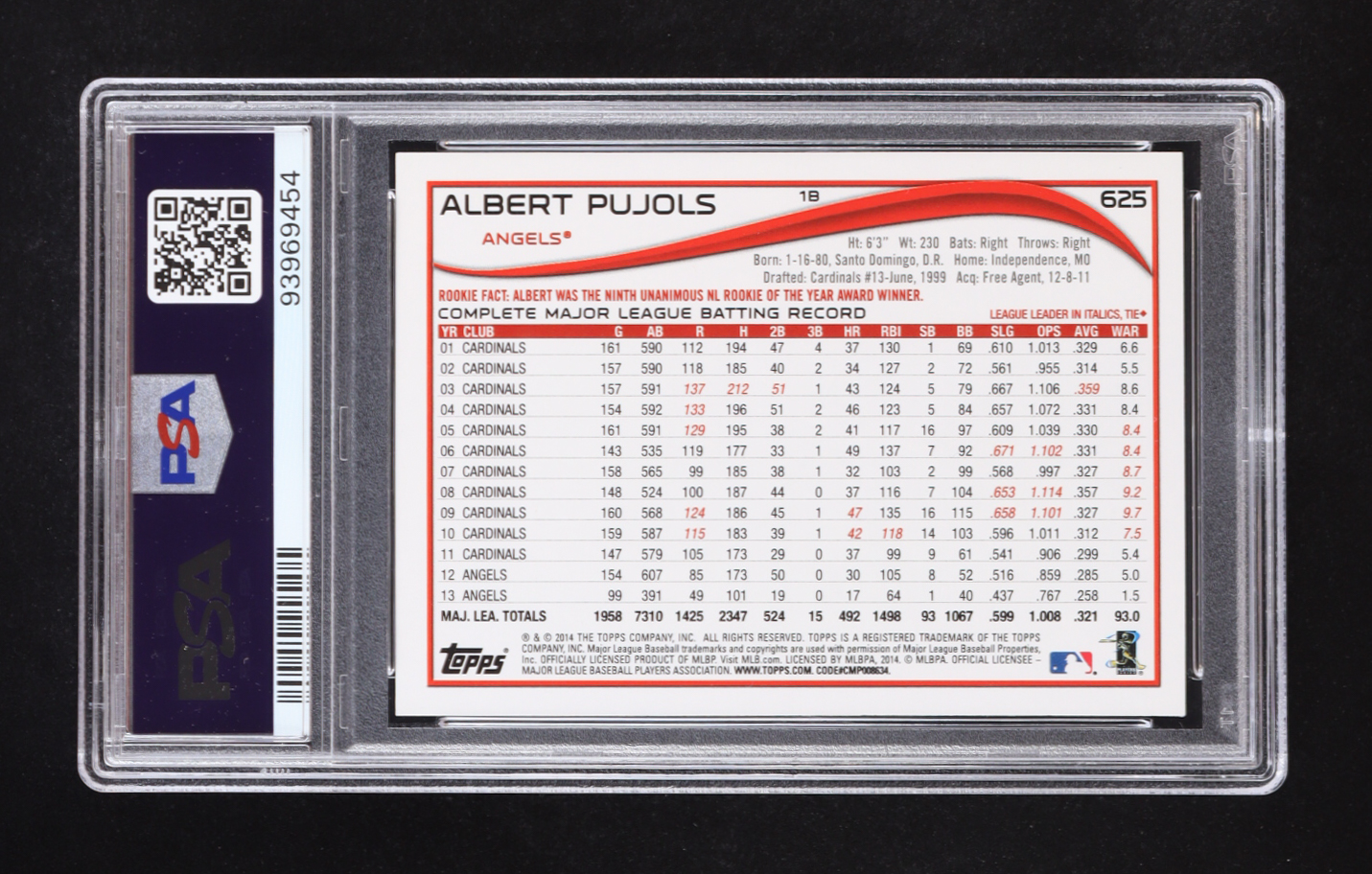 Albert Pujols 2014 Topps No Sparkle On Helmet #625 (PSA 8)