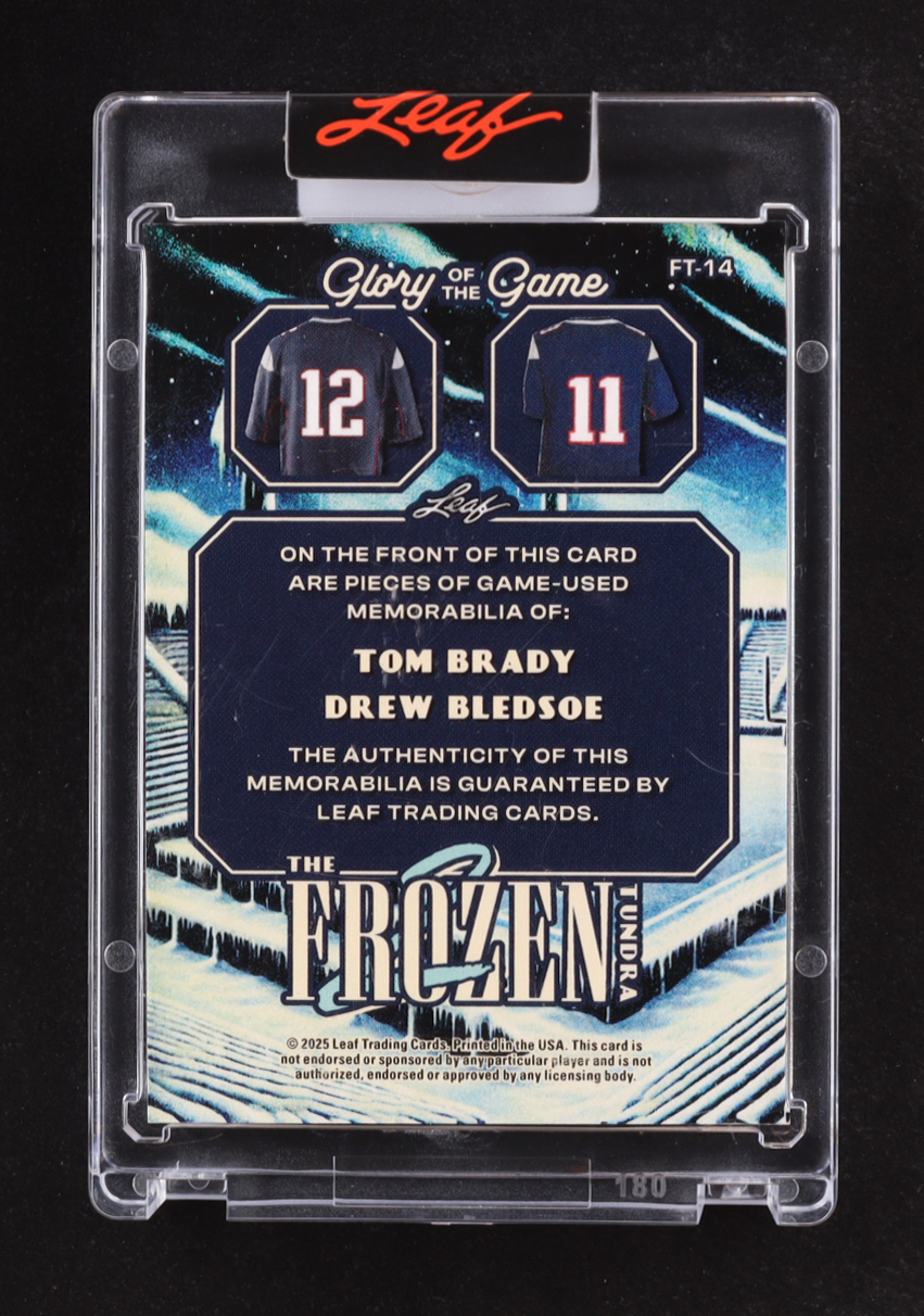 Tom Brady / Drew Bledsoe 2025 Leaf Glory of the Game The Frozen Tundra 2 Jerseys USA Flag Foil #FT14 #3/5