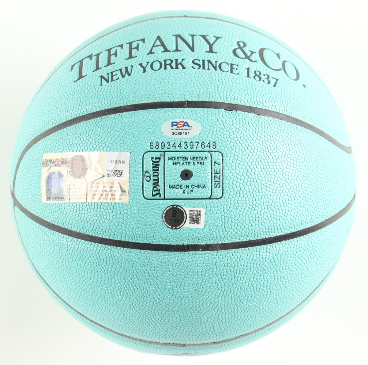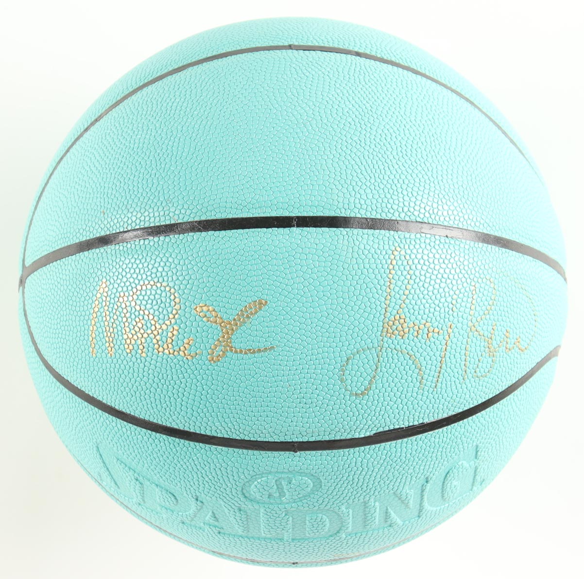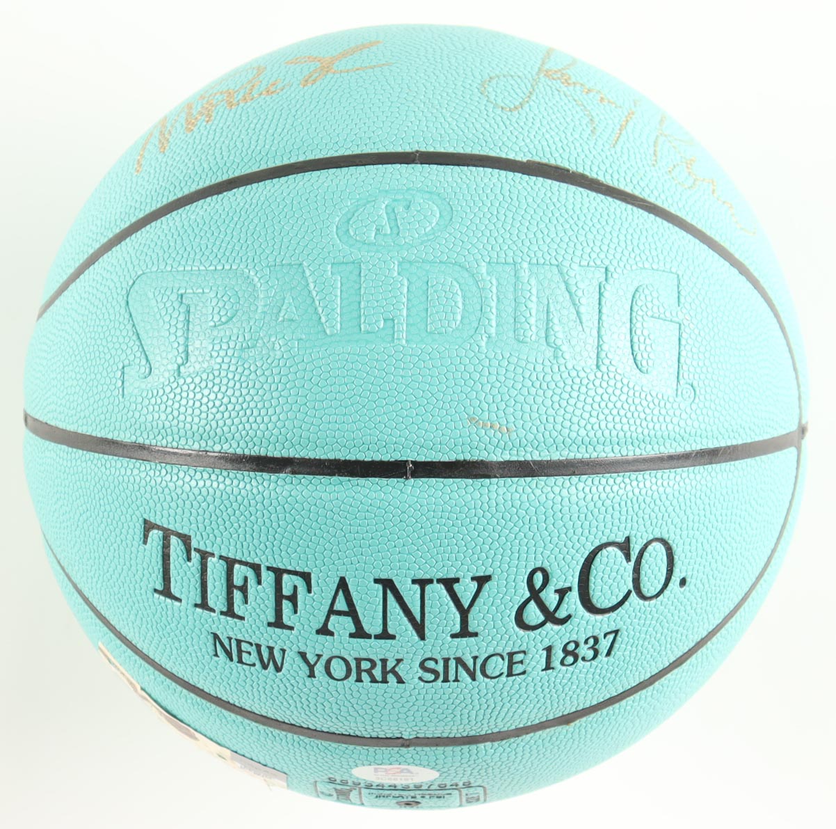 Tiffany & Co. and Spalding collaboration basketball. Hand-signed by Larry Bird (Boston Celtics, HOF) and Magic Johnson (Los Angeles Lakers, HOF).