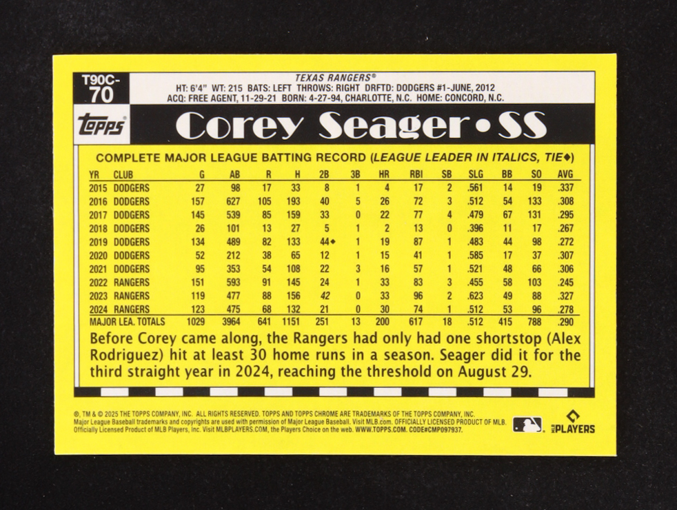 Corey Seager 2025 Topps '90 Topps Silver Pack Chrome #T90C70