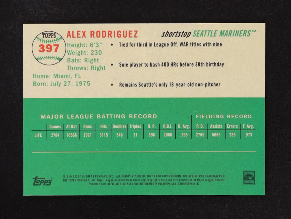 Alex Rodriguez 2023 Topps Chrome Platinum Anniversary Blue Mini-Diamond Refractors #397 #145/199