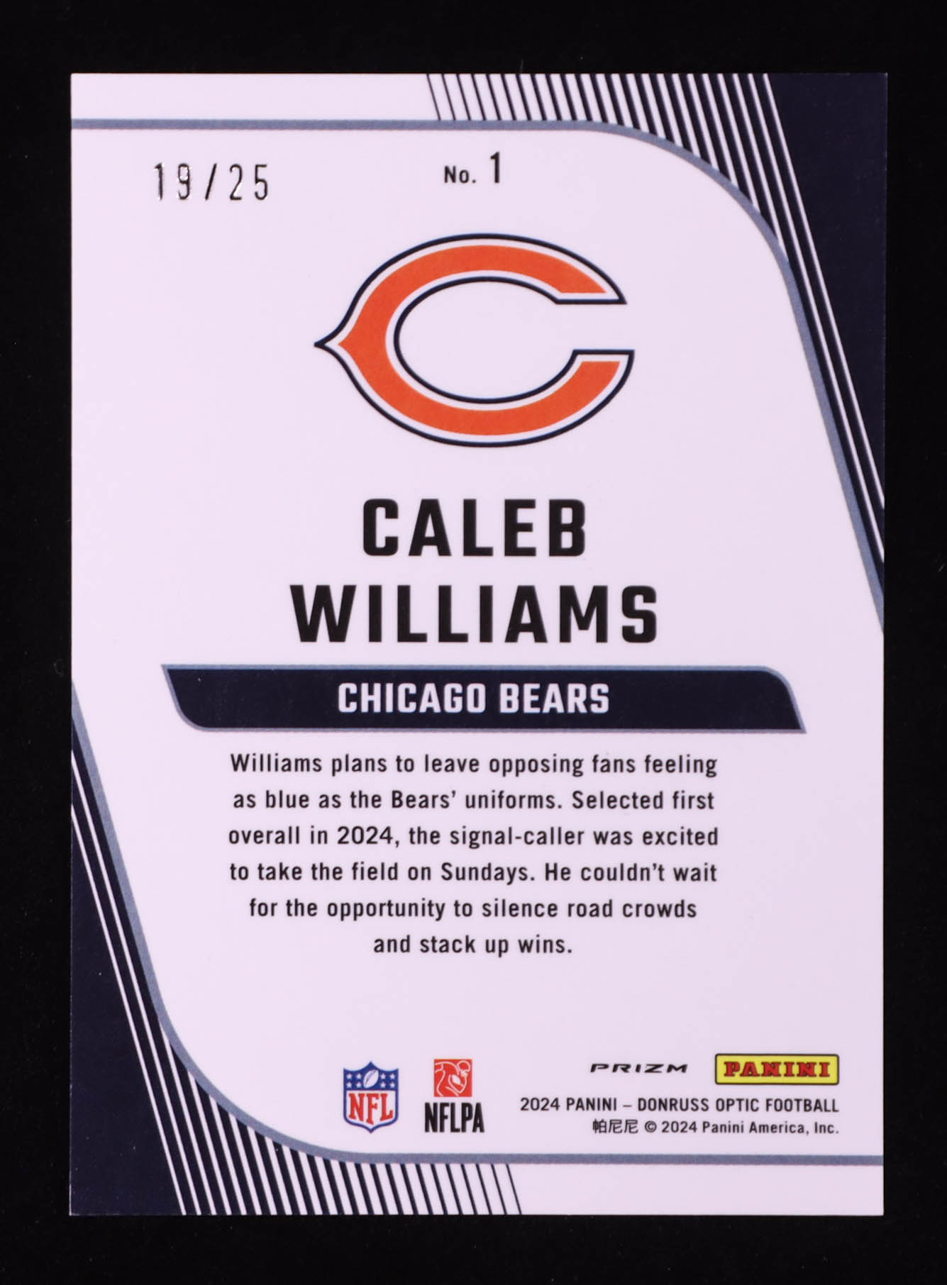 Caleb Williams 2024 Donruss Optic Rookie Primary Colors Purple Stars #1 RC #19/25
