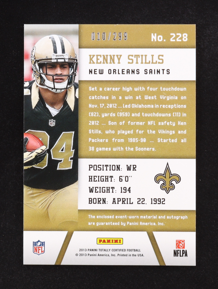 Kenny Stills 2013 Totally Certified Red Signatures #228 FF #010/299 RC