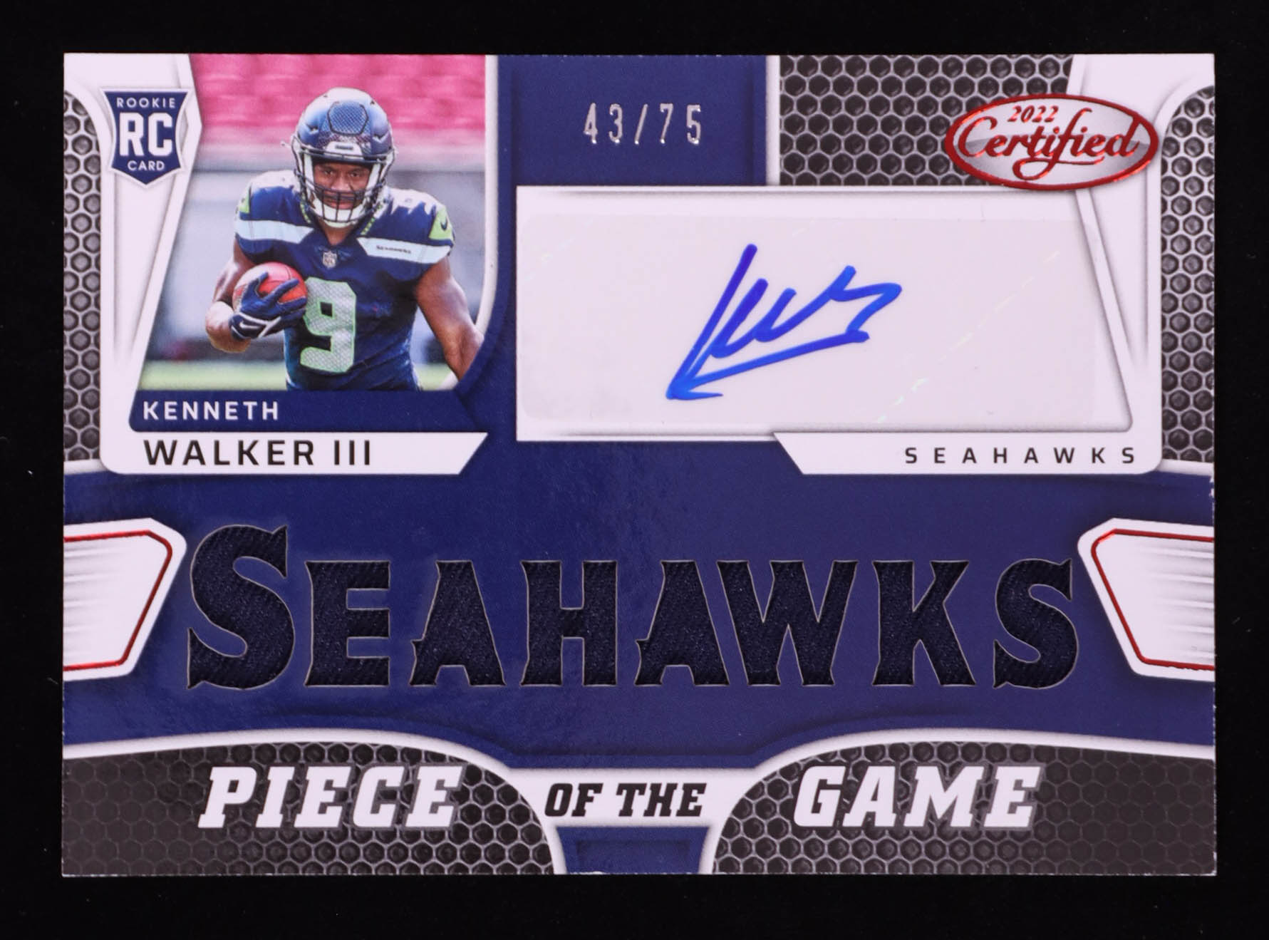 Kenneth Walker III 2022 Certified Piece of the Game Signatures Red #22 RC #43/75