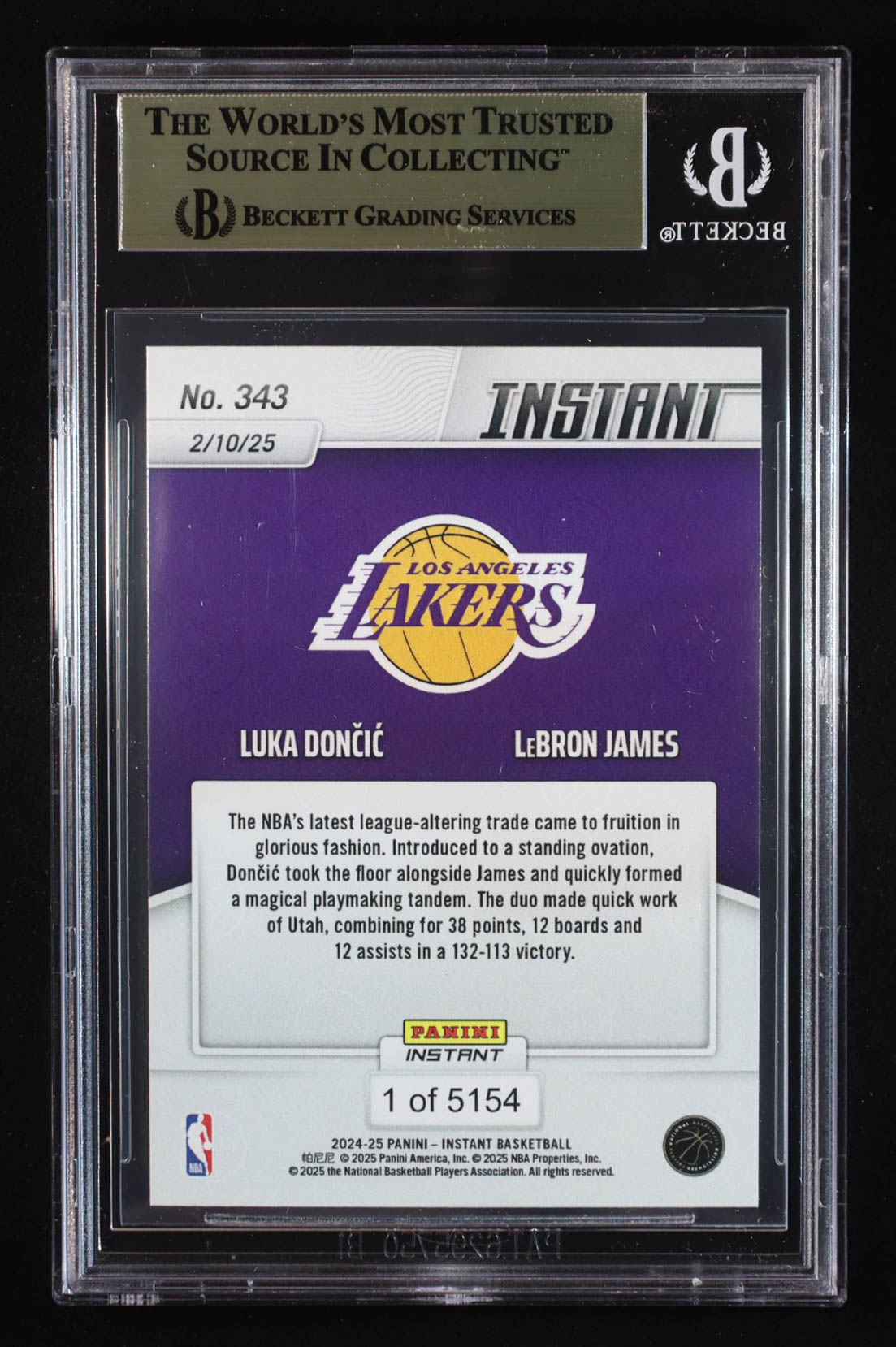 Luka Doncic / LeBron James 2024-25 Panini Instant #343 (BGS 10)