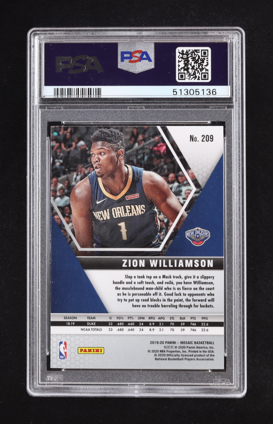 Zion Williamson 2019 Mosaic #209 RC (PSA 10)