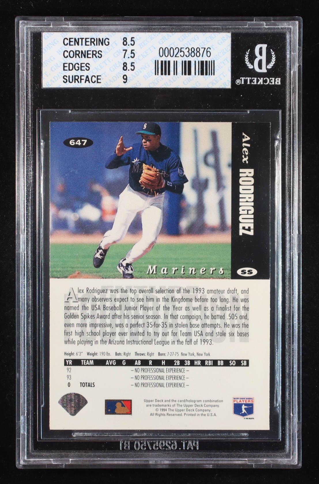 Alex Rodriguez 1994 Collector's Choice #647 RC (BGS 8)