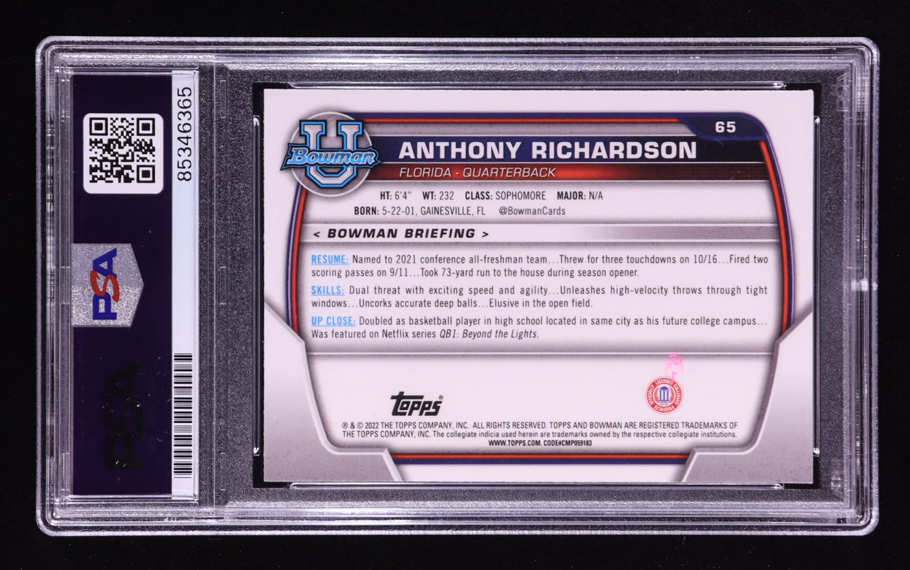 Anthony Richardson Signed 2022 Bowman Chrome University #65 RC (PSA Authentic)
