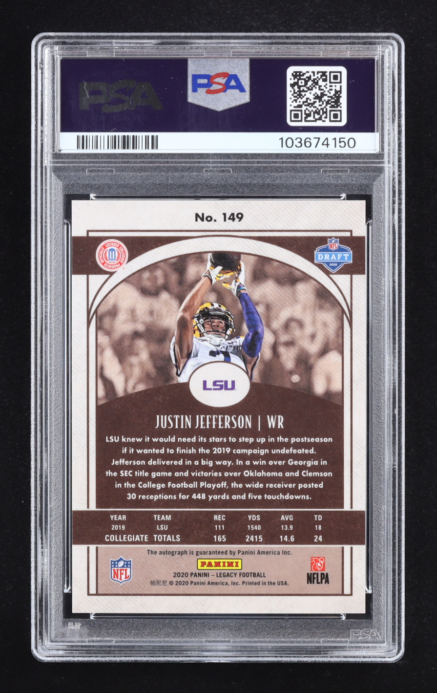 Justin Jefferson 2020 Panini Legacy Rookies Premium Penmanship #149 RC (PSA 9)