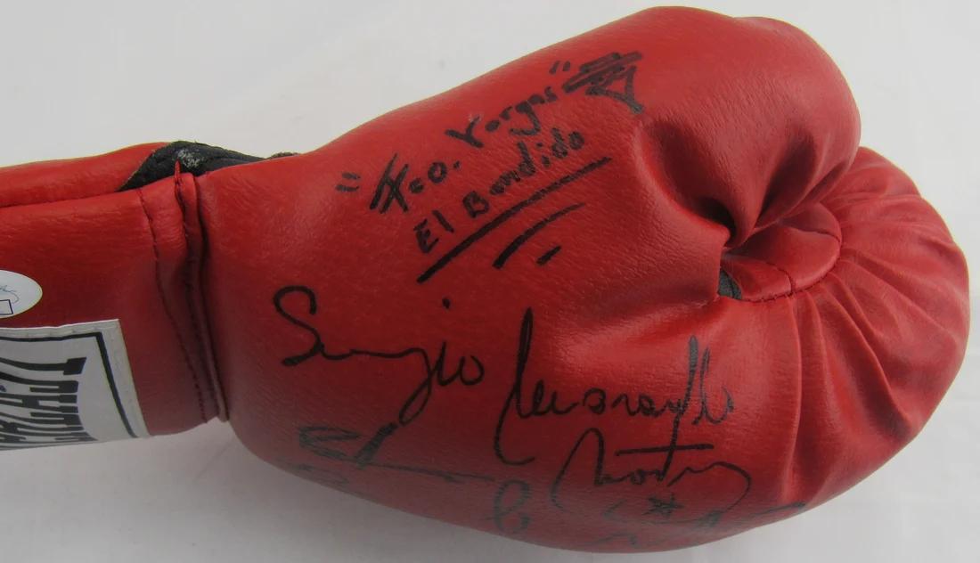 Boxing Legends Everlast Boxing Glove Signed By (6) with Floyd Mayweather Jr., Iran Barkley, Sergio Martinez, Bernard Hopkins (JSA)