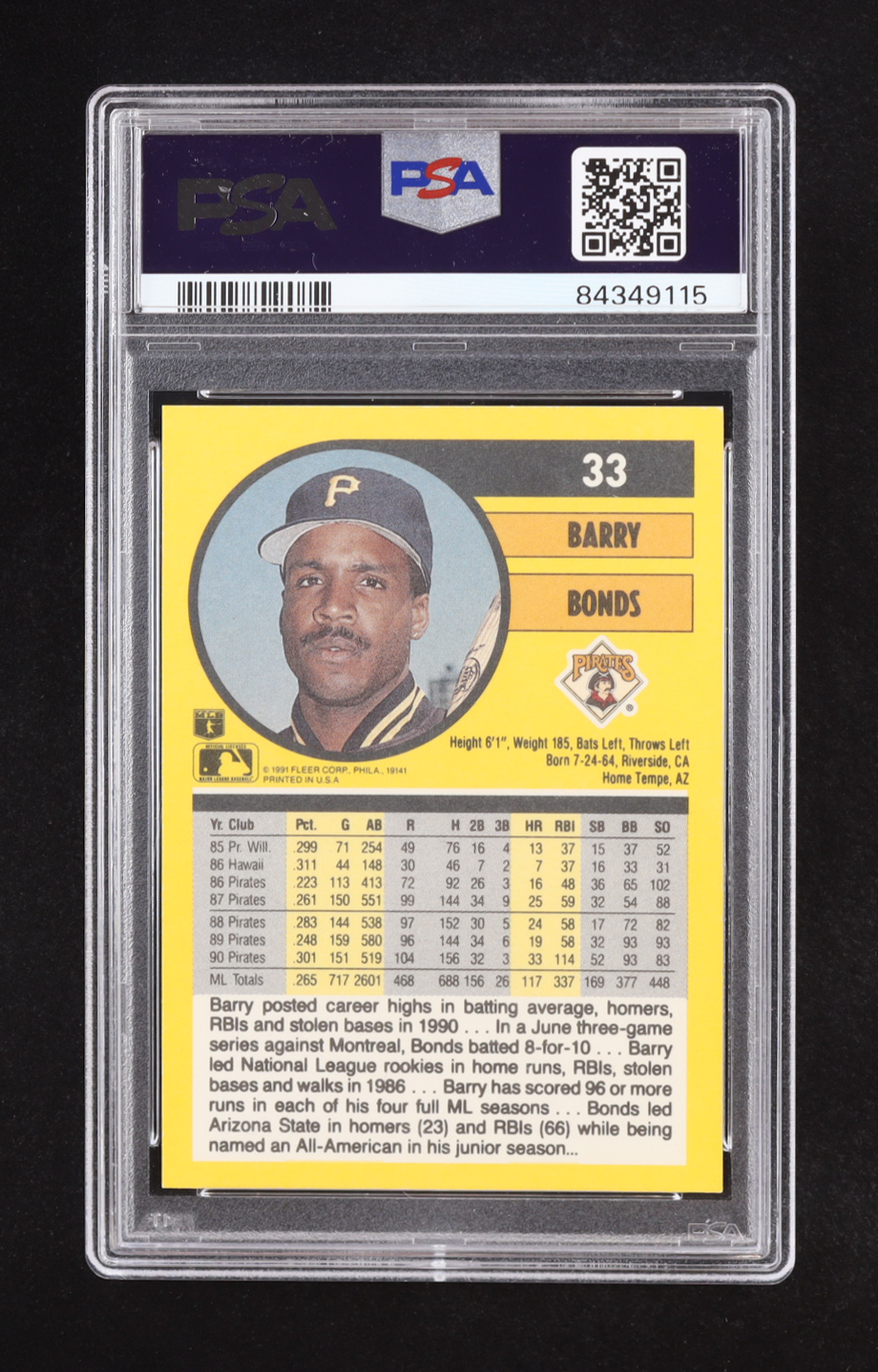 Barry Bonds 1991 Fleer #33 (PSA 9)
