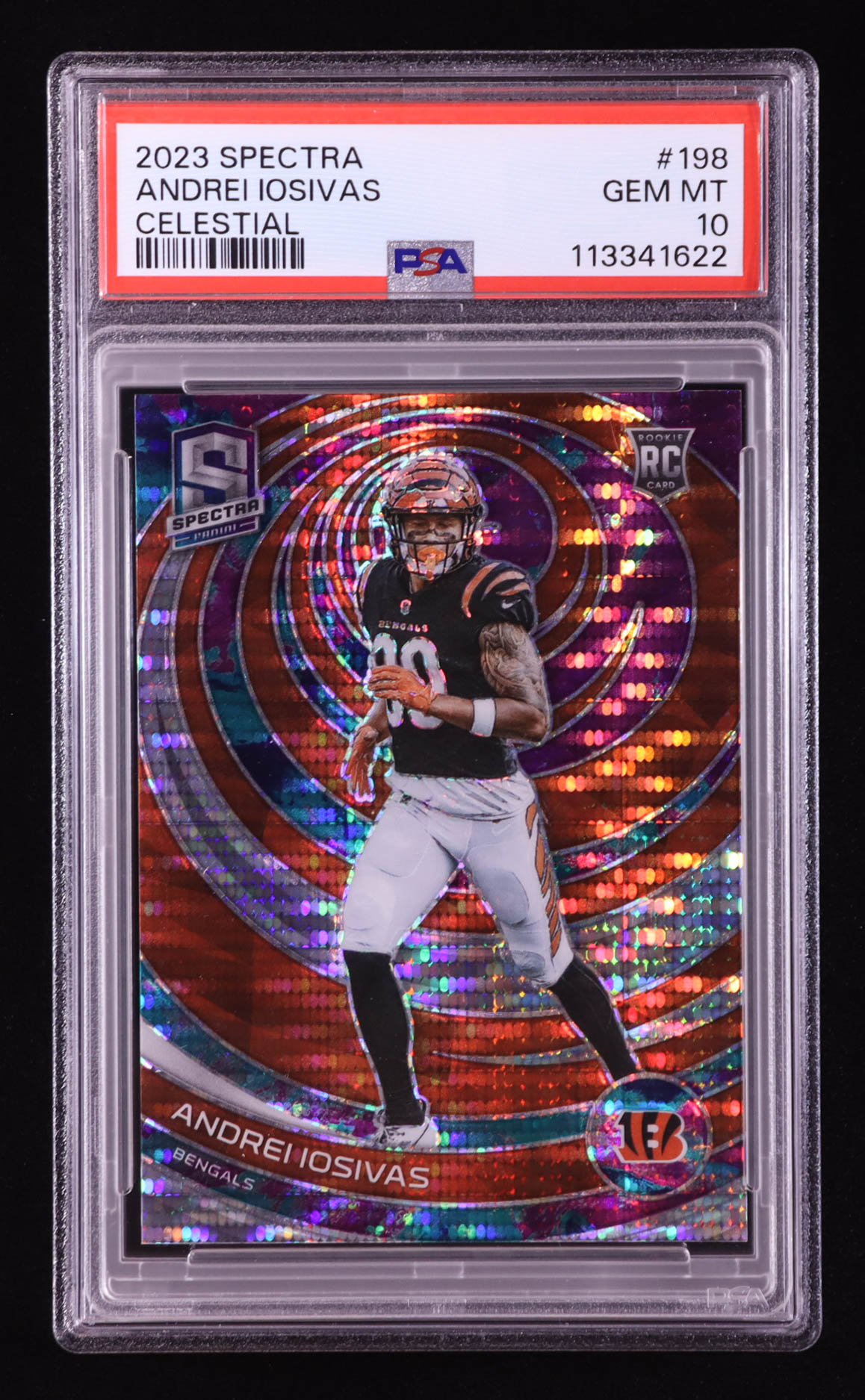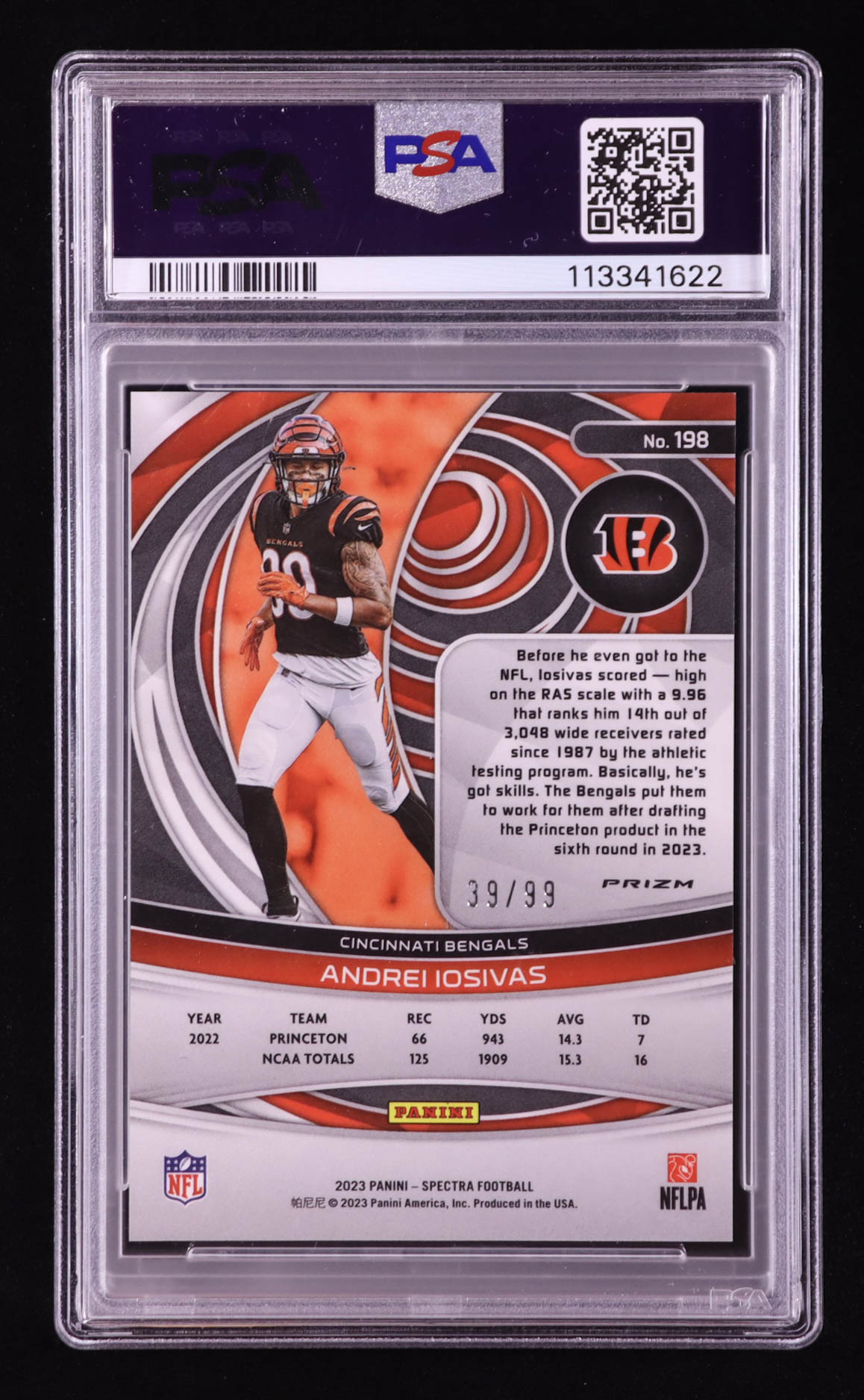 Andrei Iosivas 2023 Panini Spectra Celestial #198 #39/99 RC (PSA 10)