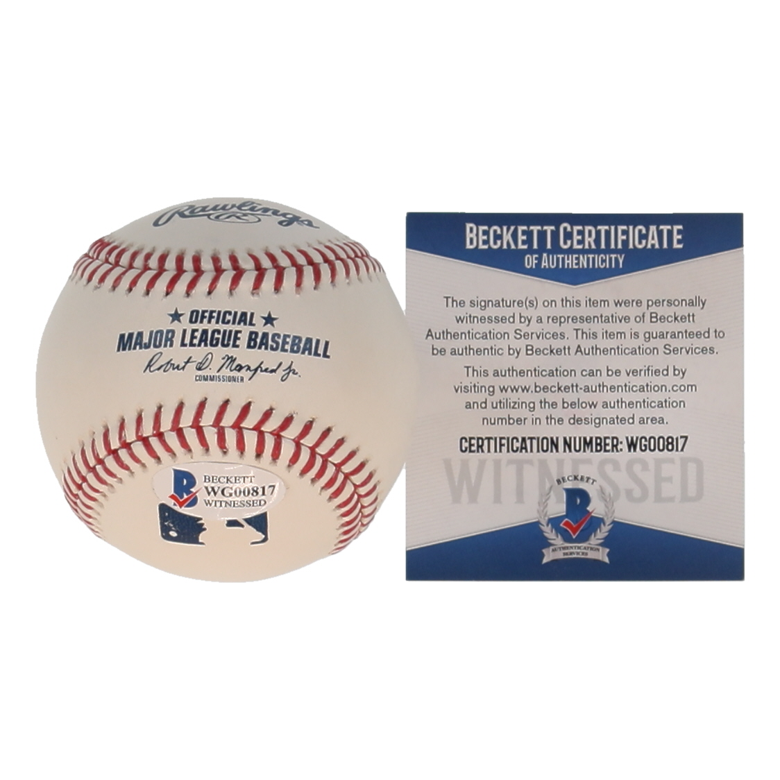 The autograph includes an official Beckett Authentication Services serially-numbered hologram and matching COA for authenticity purposes. The signing of this item was witnessed by Beckett.