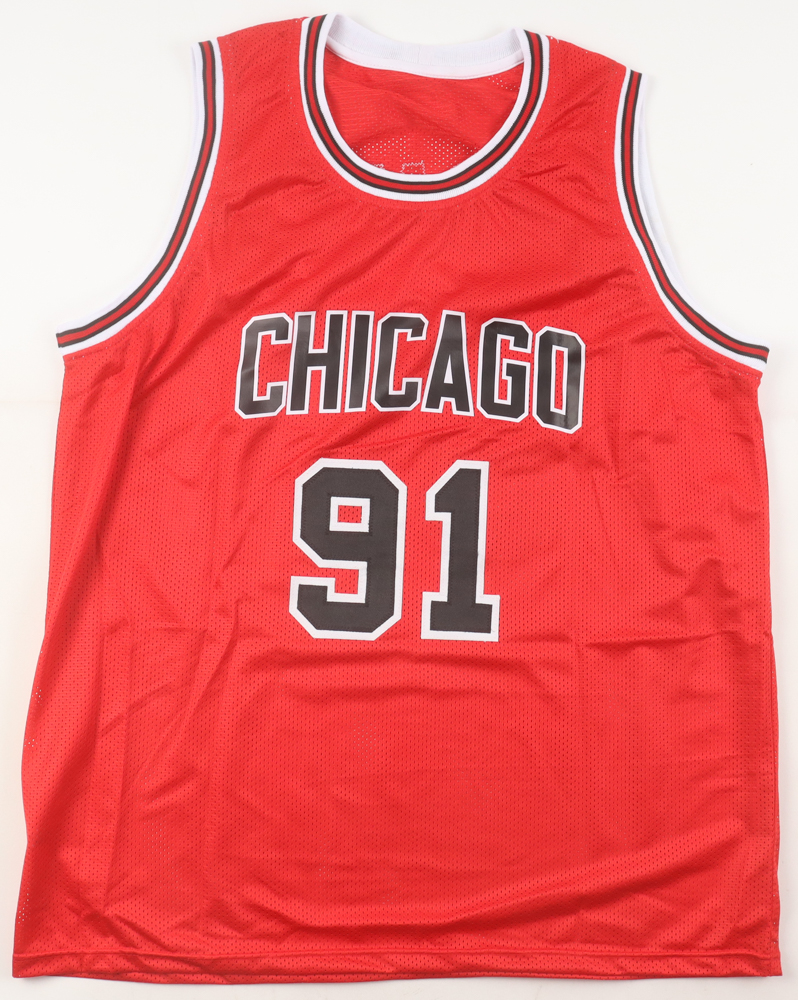 Custom jersey with everything sewn on, size XL. Hand-signed by Dennis Rodman (HOF).