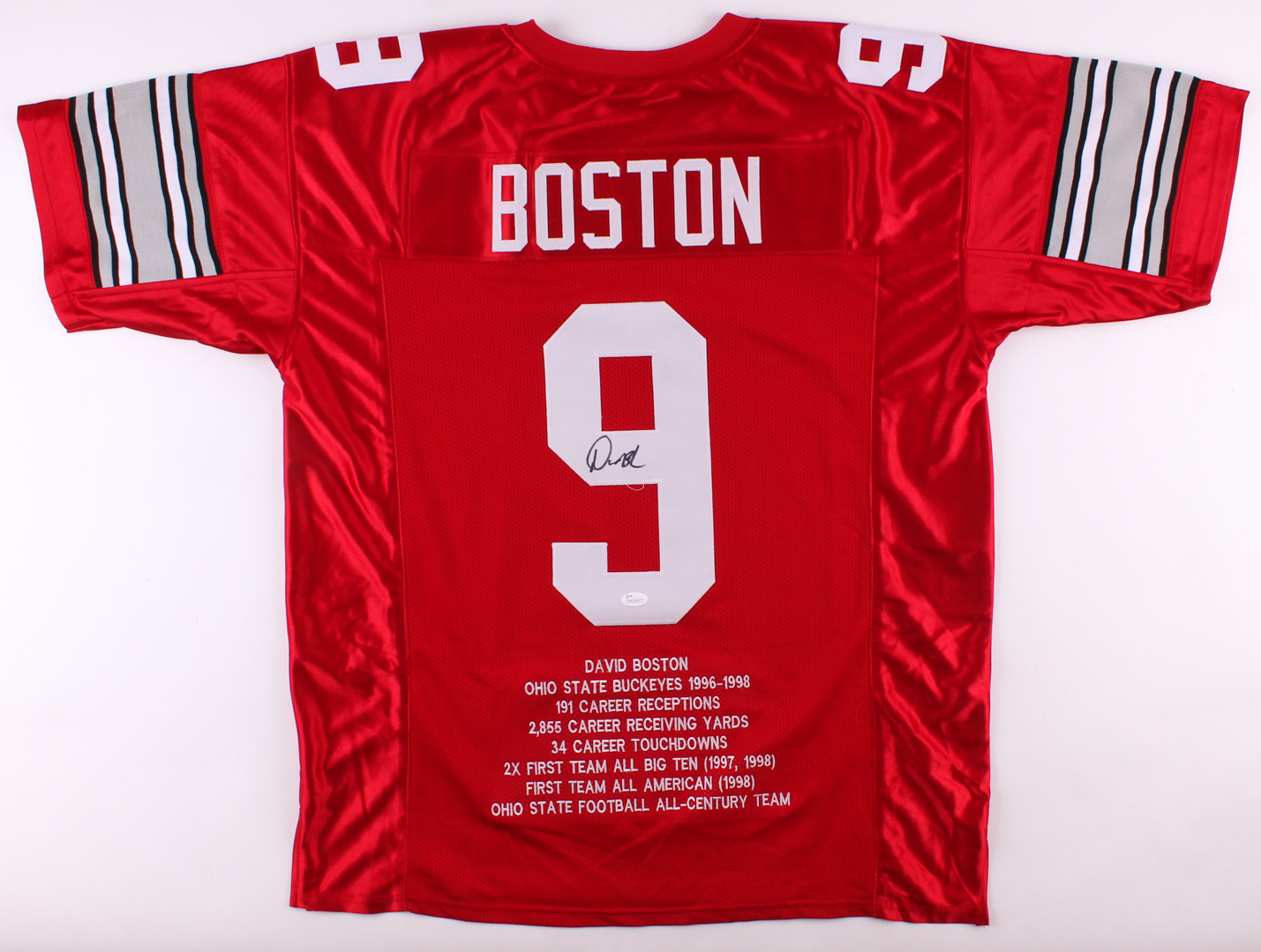 David Boston Signed Ohio State Buckeyes Career Highlight Stat Jersey (JSA COA)