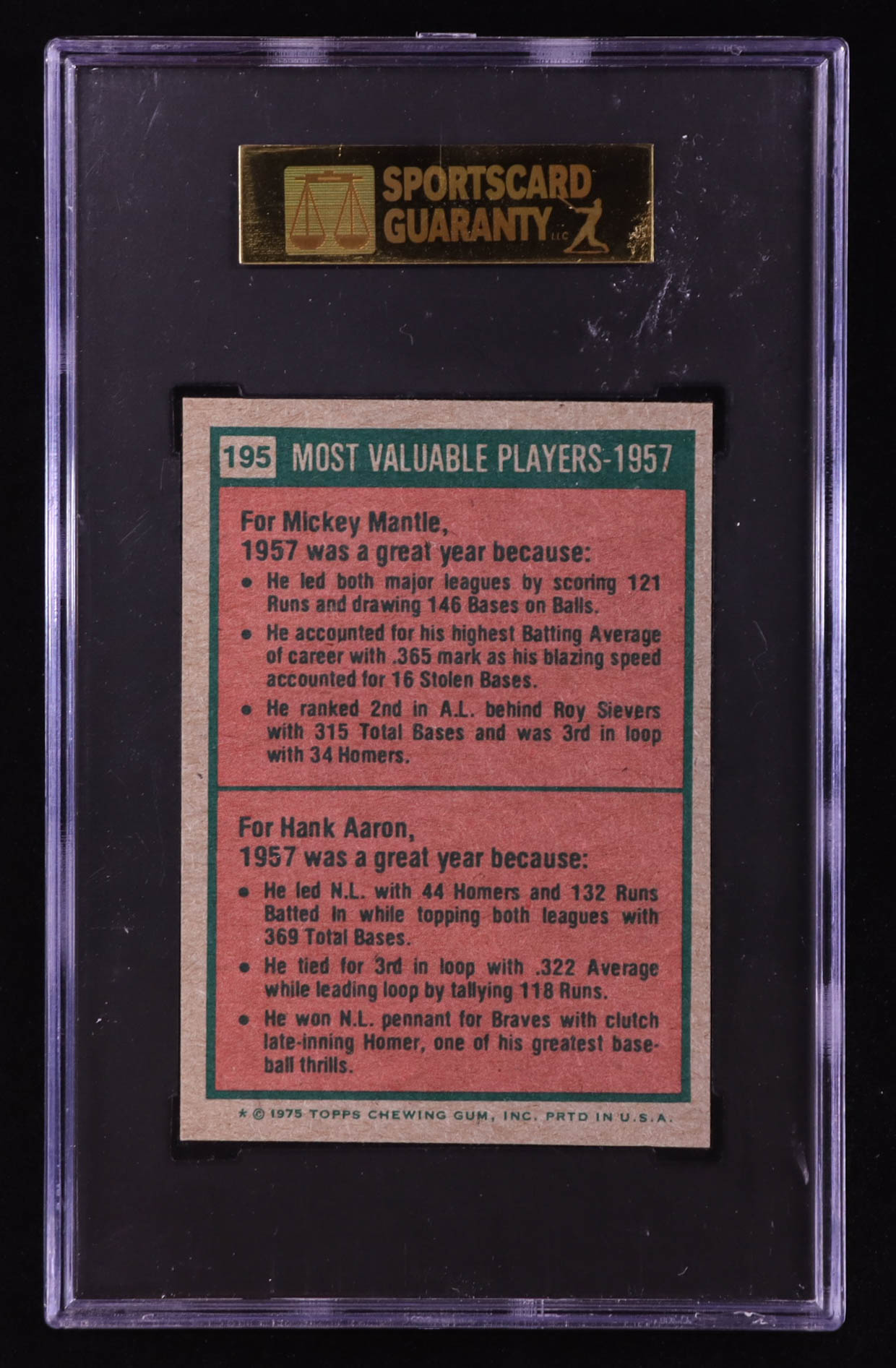 Mickey Mantle / Hank Aaron 1975 Topps Mini #195 MVP (SGC 7.5)