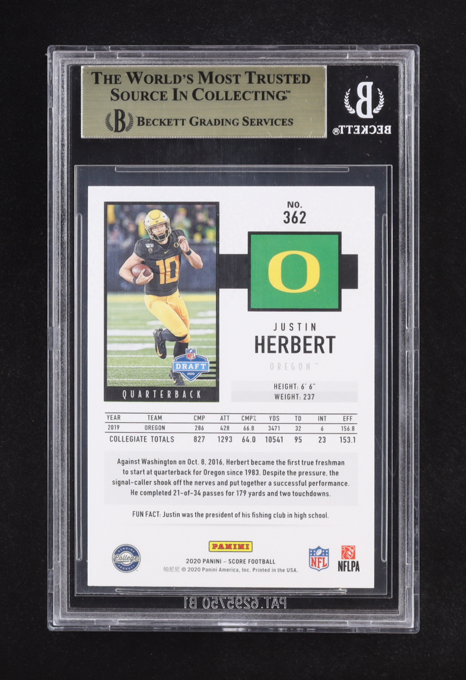 Justin Herbert 2020 Score #362 RC (BGS 9.5)