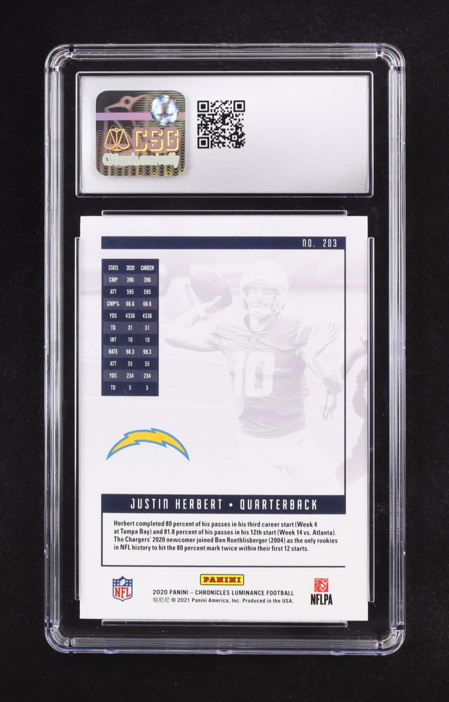 Justin Herbert 2020 Panini Chronicles Luminance #203 RC (CSG 9.5)