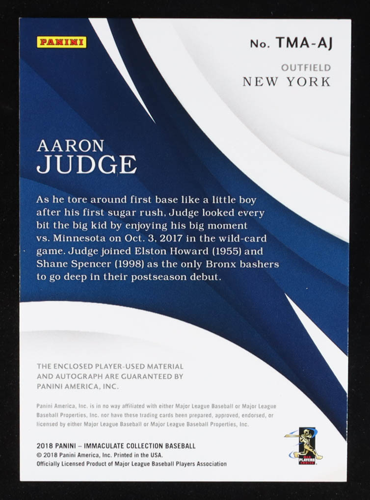 Aaron Judge 2018 Immaculate Collection Immaculate Triple Material Autographs Blue #5 #5/5