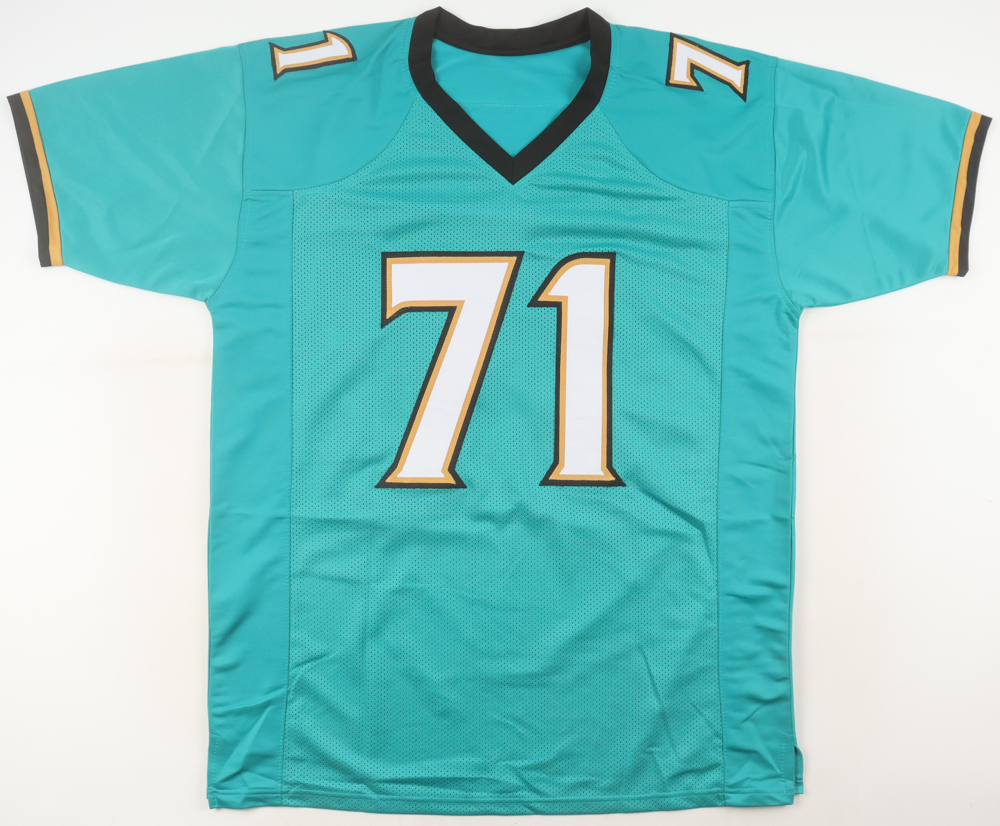 Custom jersey. Everything sewn on, size XL. Hand-signed and inscribed by Tony Boselli (HOF).