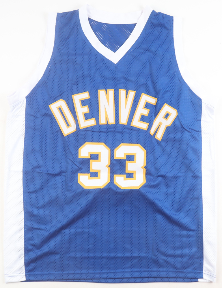 Custom jersey with everything sewn on, size XL. Hand-signed and inscribed by David Thompson (HOF).