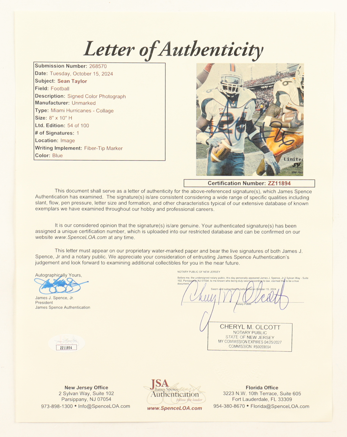The autograph(s) includes an official James Spence Authentication (JSA) hologram and matching LOA for authenticity purposes.