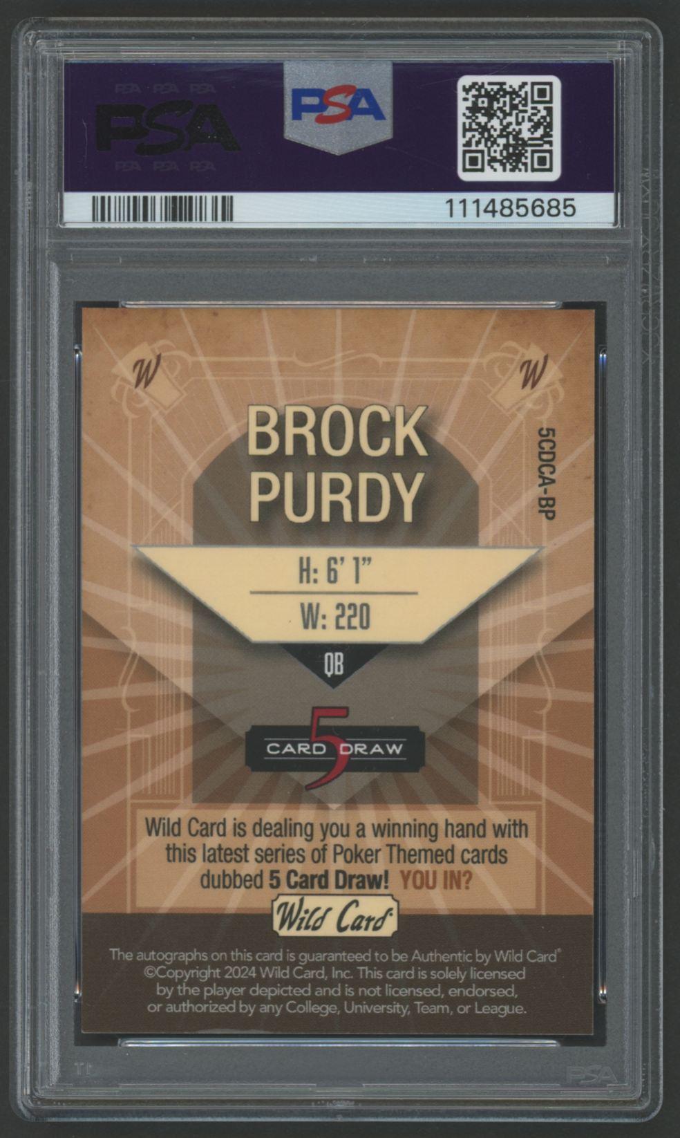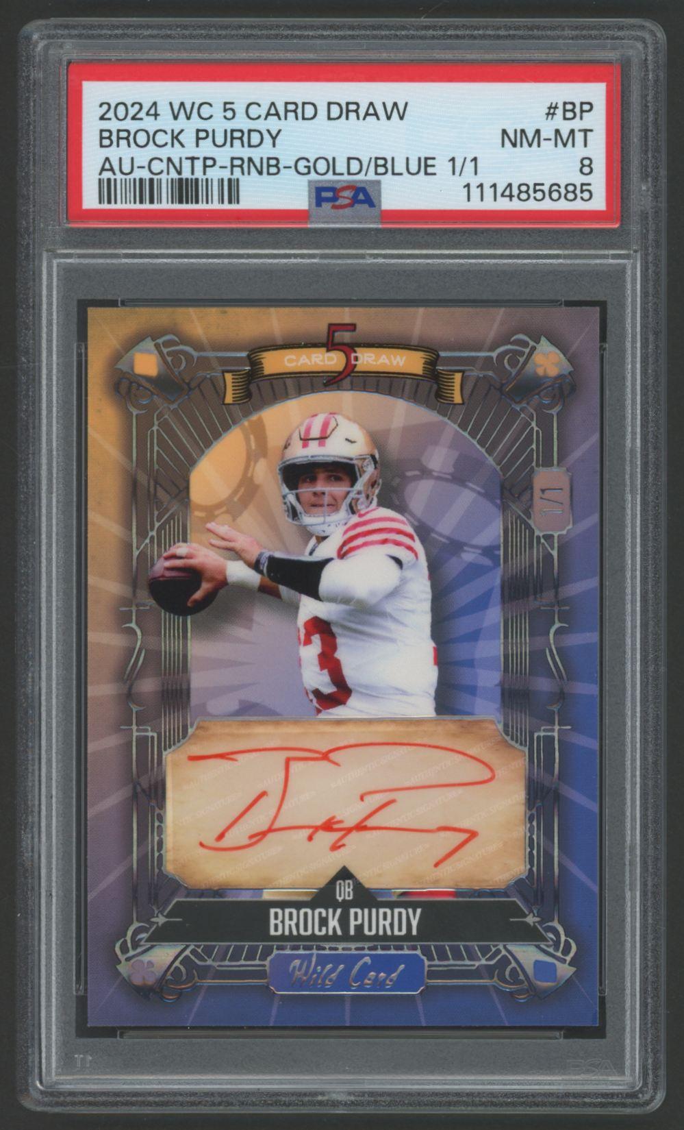 Brock Purdy 2024 Wild Card 5 Card Draw Autographs Gold / Blue #BP #1/1 (PSA 8)