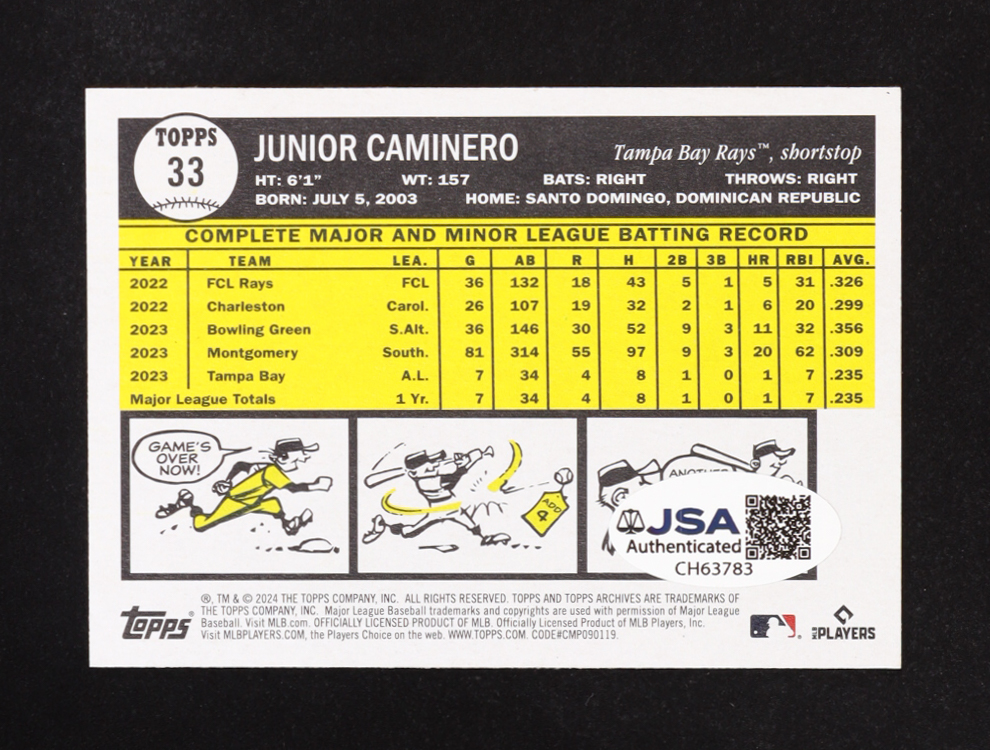 Junior Caminero Signed 2024 Topps Archives #33 RC (JSA)