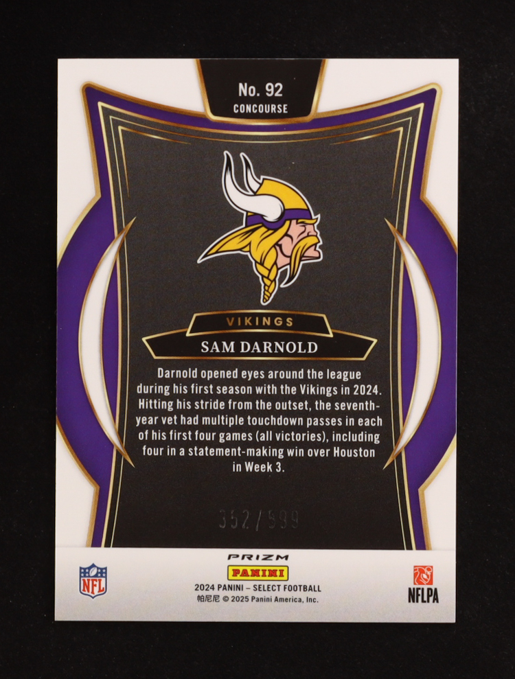 Sam Darnold 2024 Select Prizm Neon Green Shock #92 #352/599