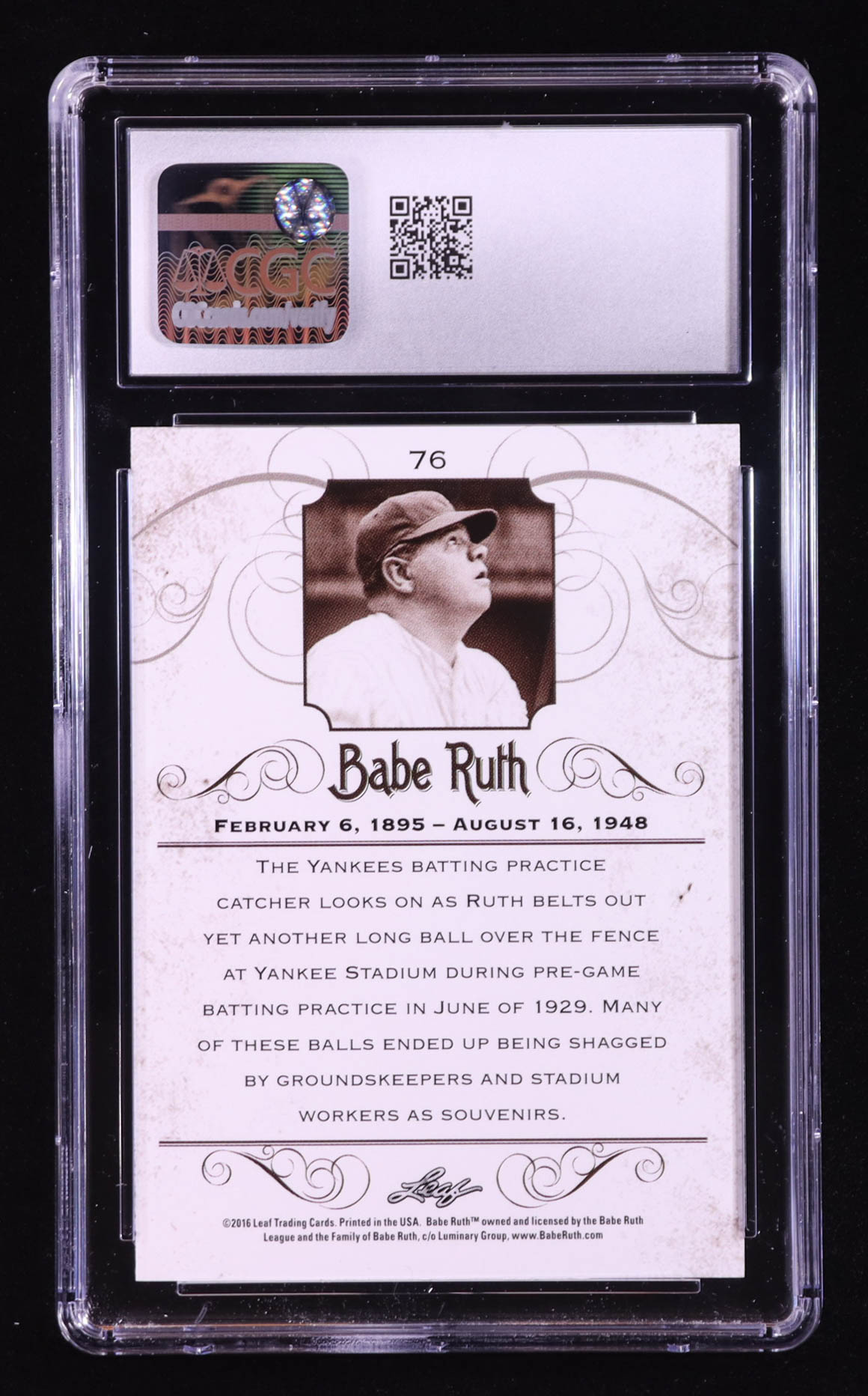 Babe Ruth 2016 Leaf Babe Ruth Collection #76 (CGC 10)