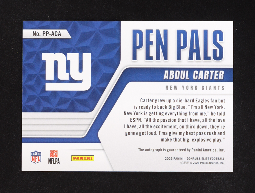 Abdul Carter 2025 Elite Pen Pals Purple Ink #12 RC