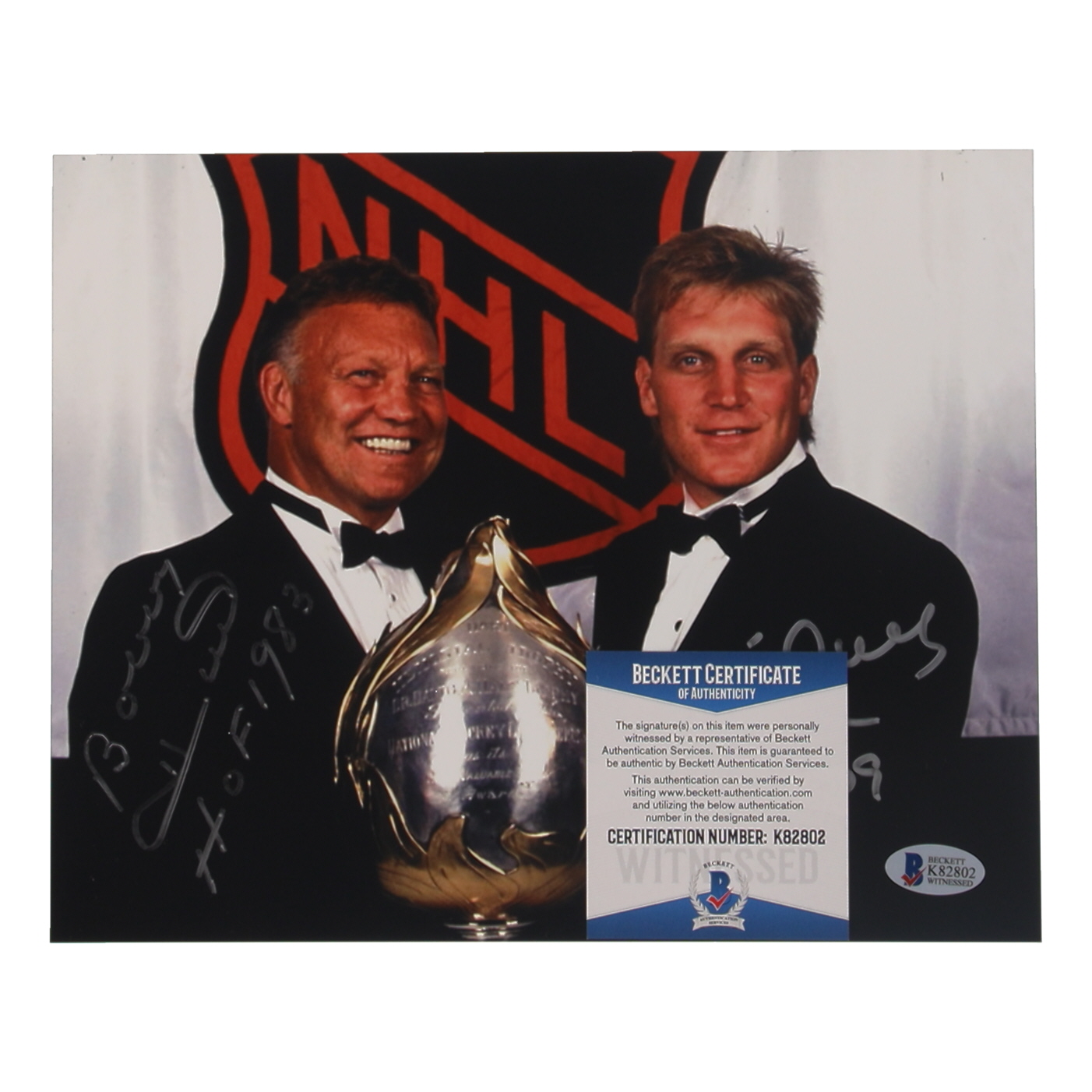 Bobby & Brett Hull Signed 8x10 Photo Inscribed "HOF 1983" & "HOF '09" (Beckett)