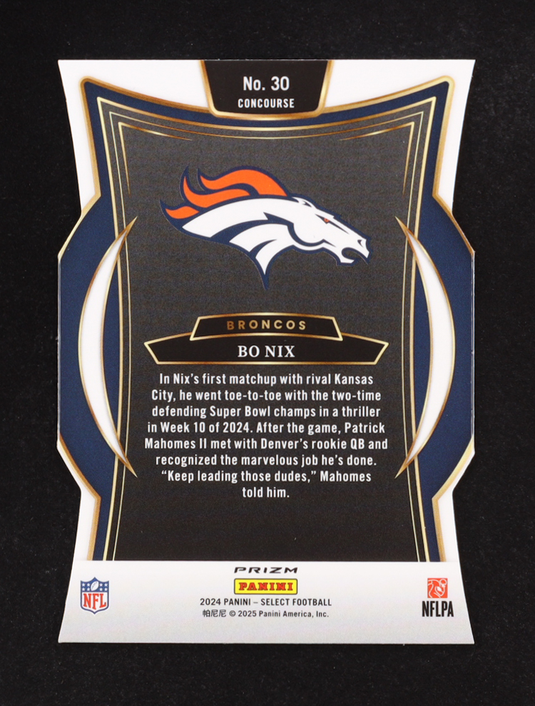 Bo Nix 2024 Select Prizm Silver Die Cut #30 RC