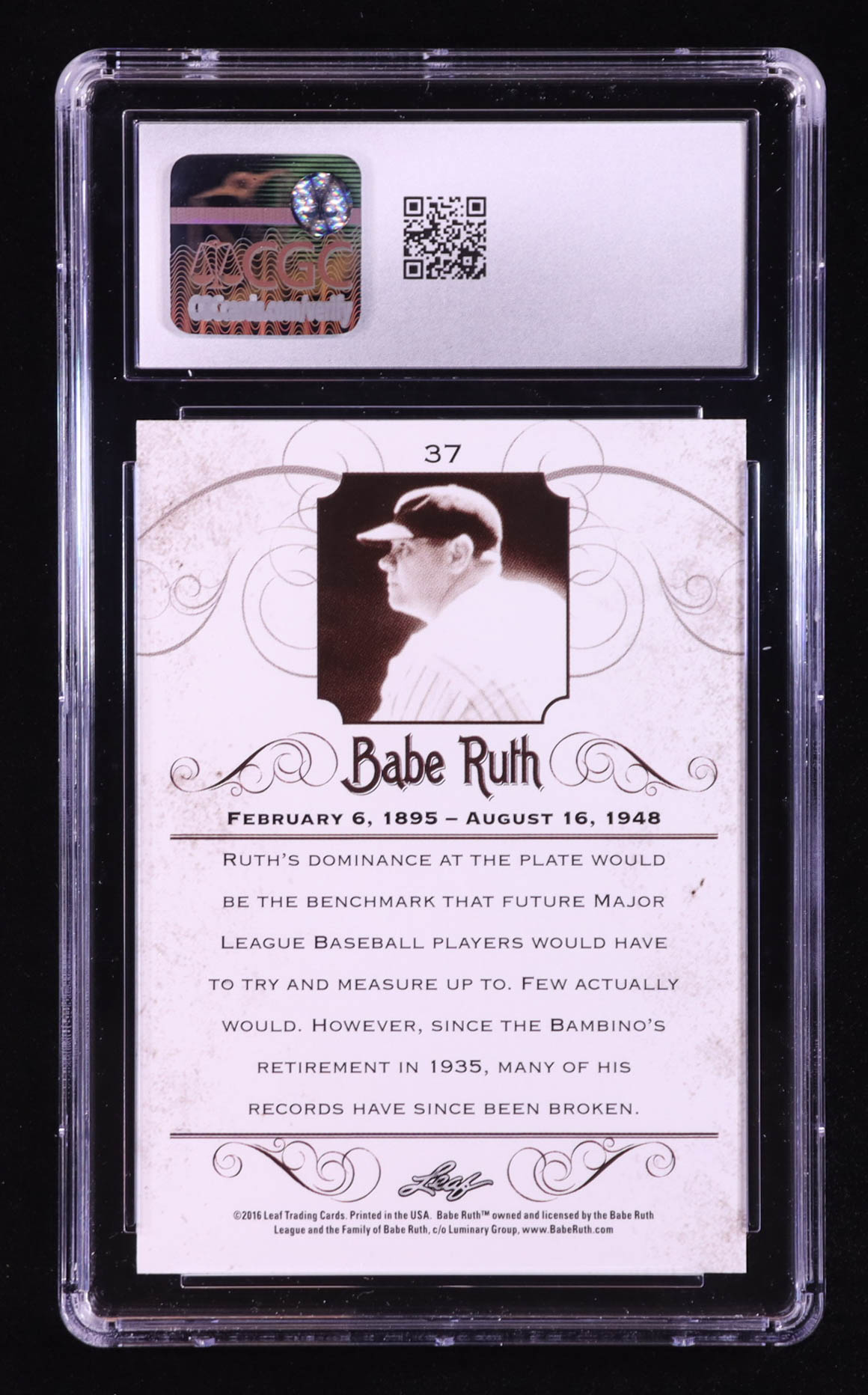 Babe Ruth 2016 Leaf Babe Ruth Collection #37 (CGC 10)