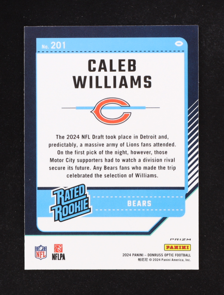 Caleb Williams 2024 Donruss Optic Rated Rookie Blue Hyper #201 RC